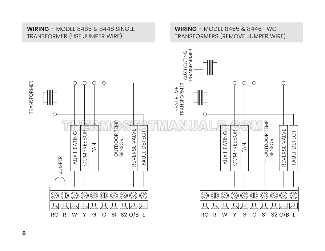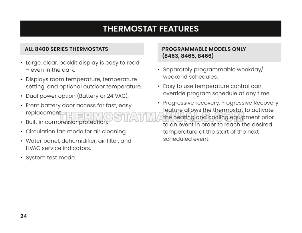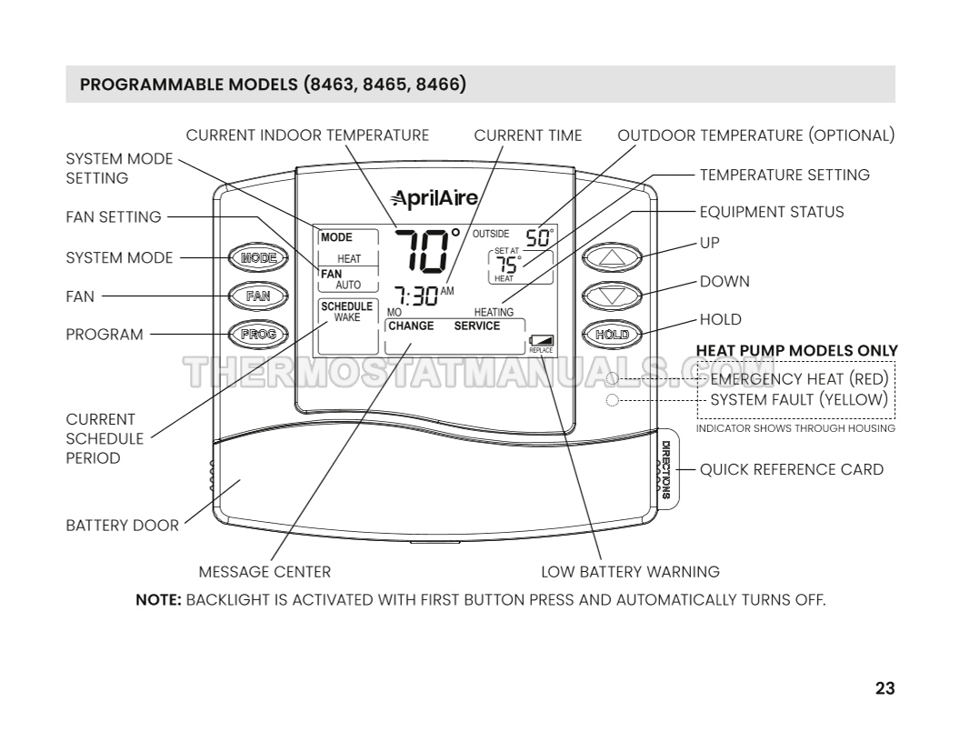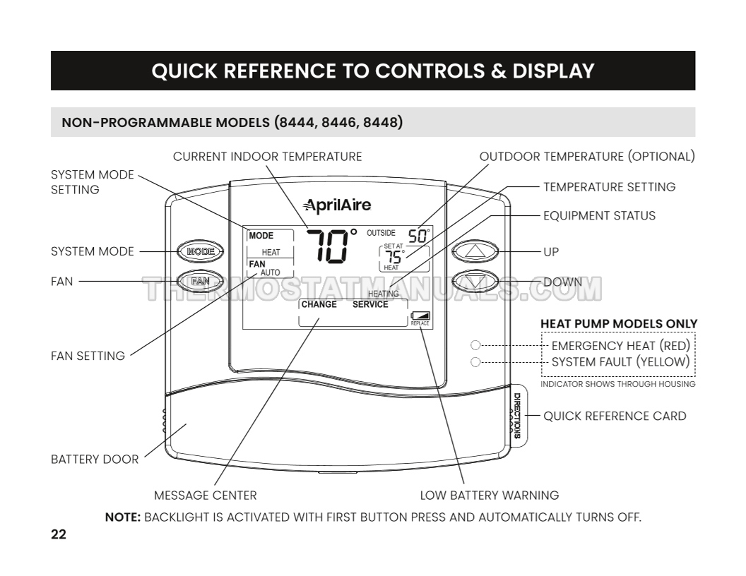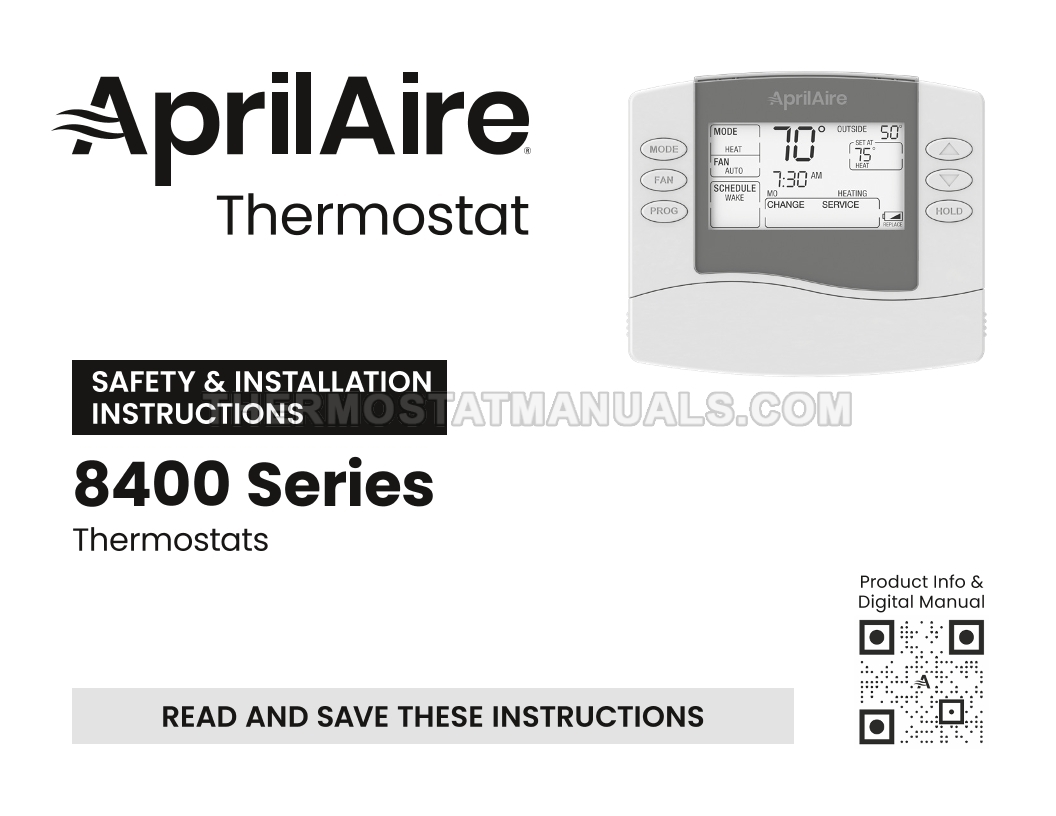 In most houses, installing a AprilAire 8448 8400 Series thermostat is a simple task that takes up to 30 minutes. Step-by-step instructions are described in safety & installation instructions and simplify the installation and wiring of the standard and heat pump HVAC systems programmable digital thermostat, so use this document as your basic guide on 28 pages in English.