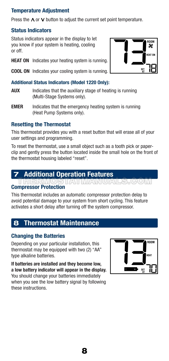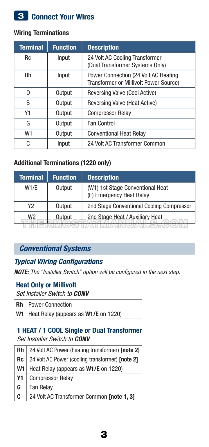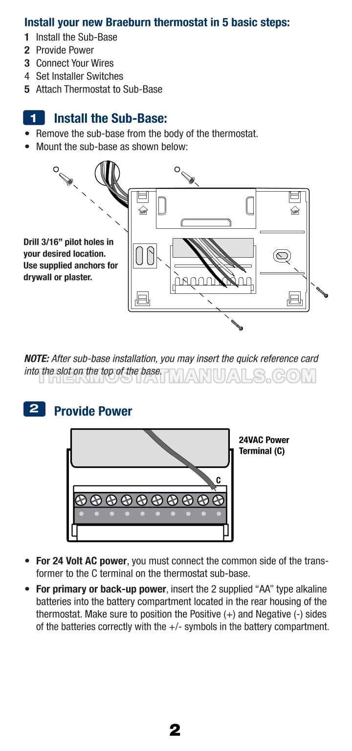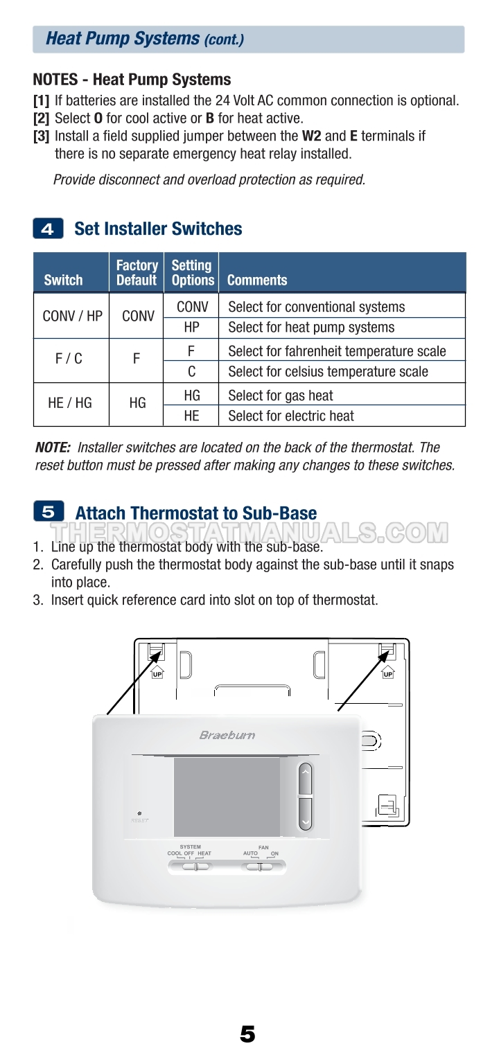 To replace the old thermostat and install the Braeburn 1020 Builder, follow the steps described in the installer guide on the 11 pages. This will allow the single stage heat / cool conventional and heat pump non-programmable thermostat to be installed correctly and proceed to device configuration.