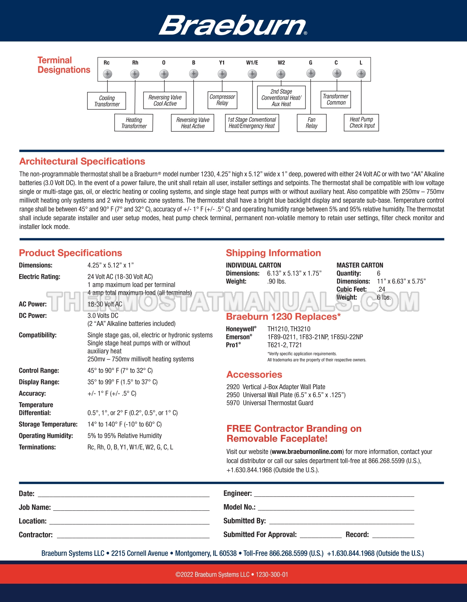Braeburn 1230 Specifications Sheet