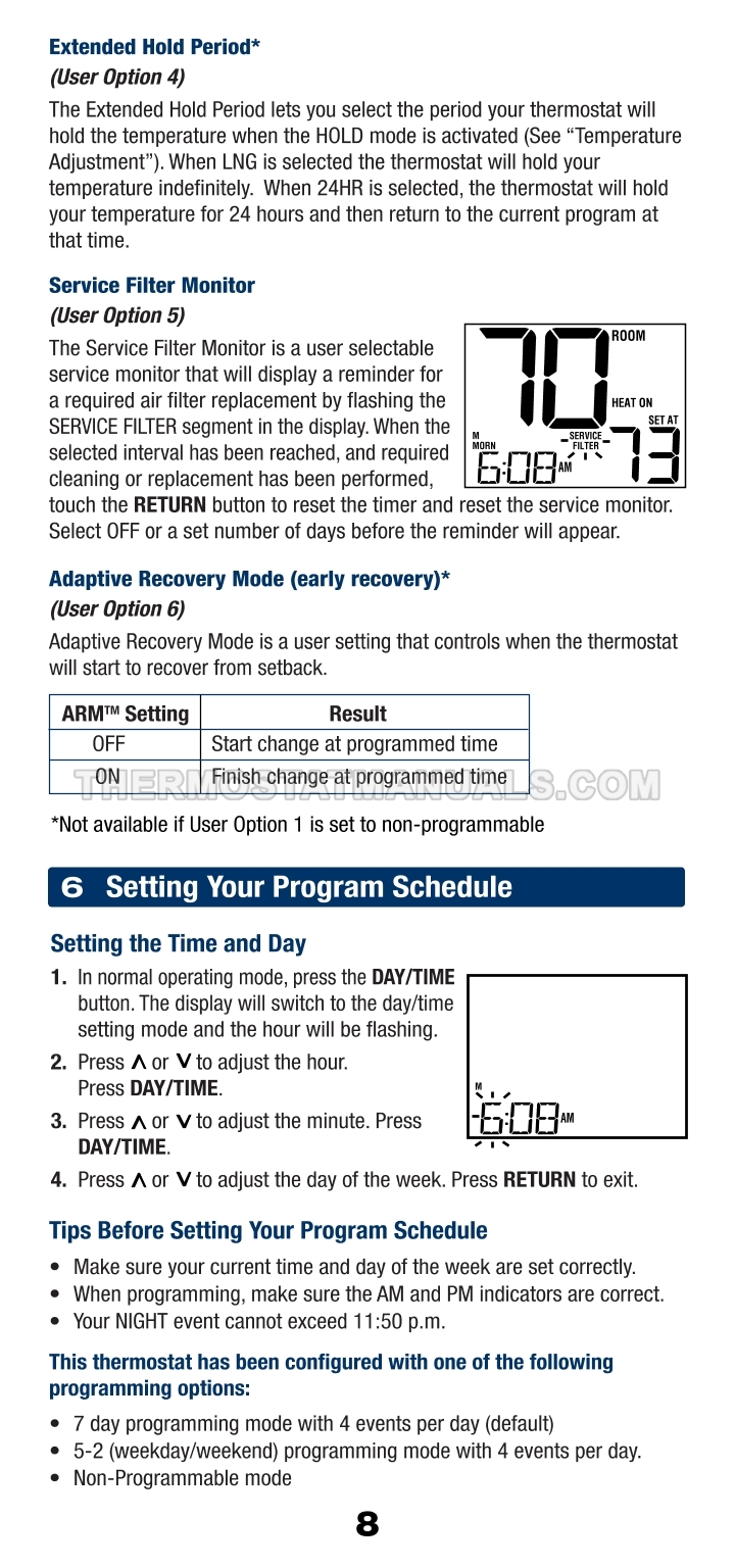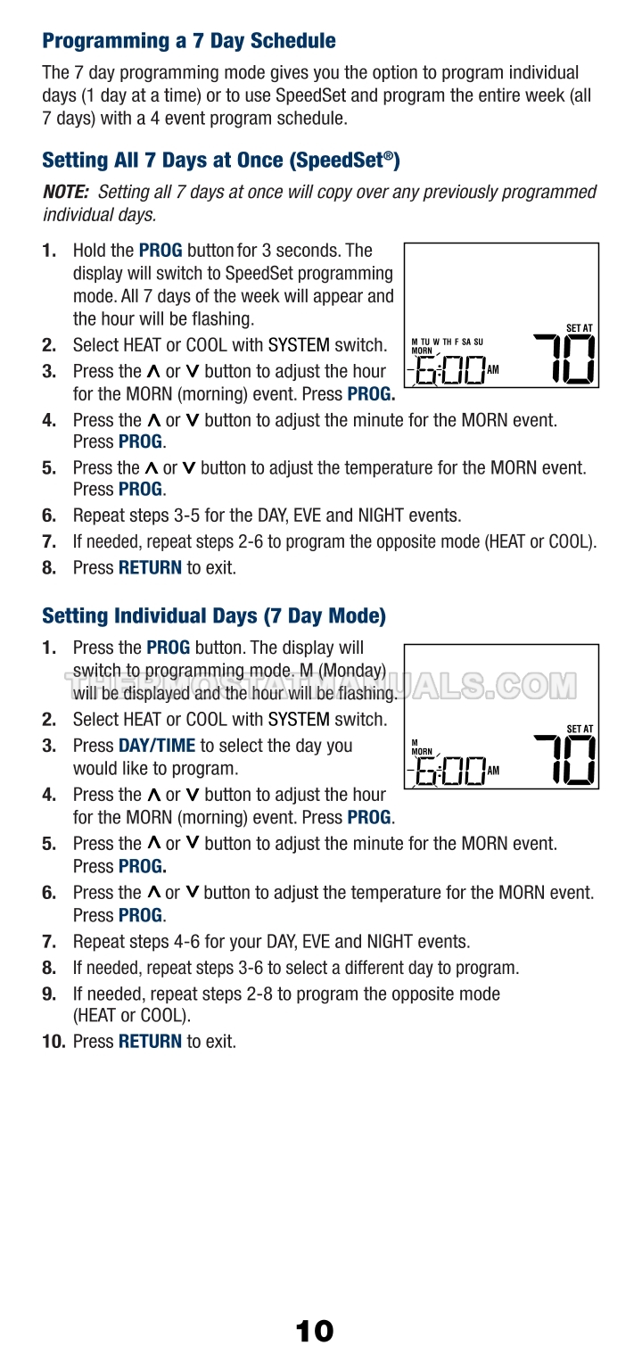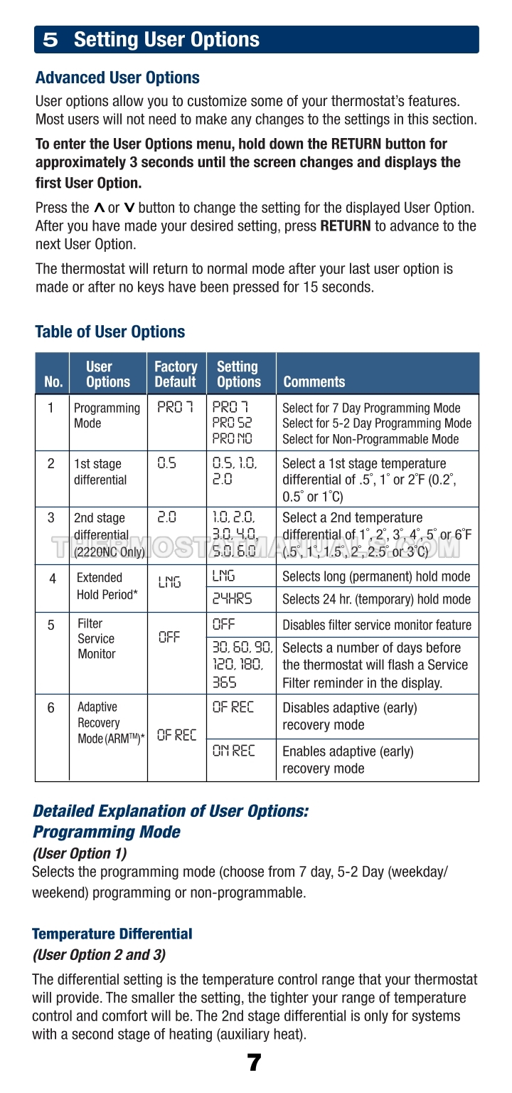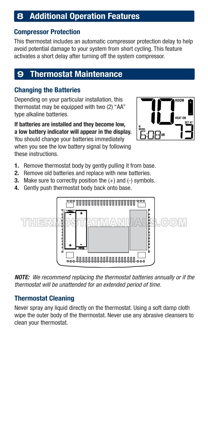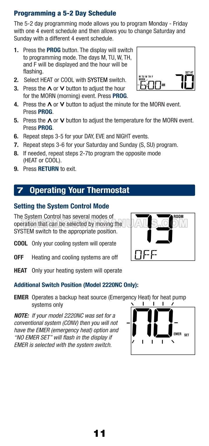 The use of Braeburn 2220NC Builder thermostats is one of the necessary measures to maintain a comfortable microclimate and ensure energy efficiency of heating and air conditioning in residential buildings, offices, hotels, etc. Thanks to user guide, you can learn about the main differences of the device and adjust the operation of the compact thermostat with 2 sq in display, bright blue backlight and adjustable temperature limits.