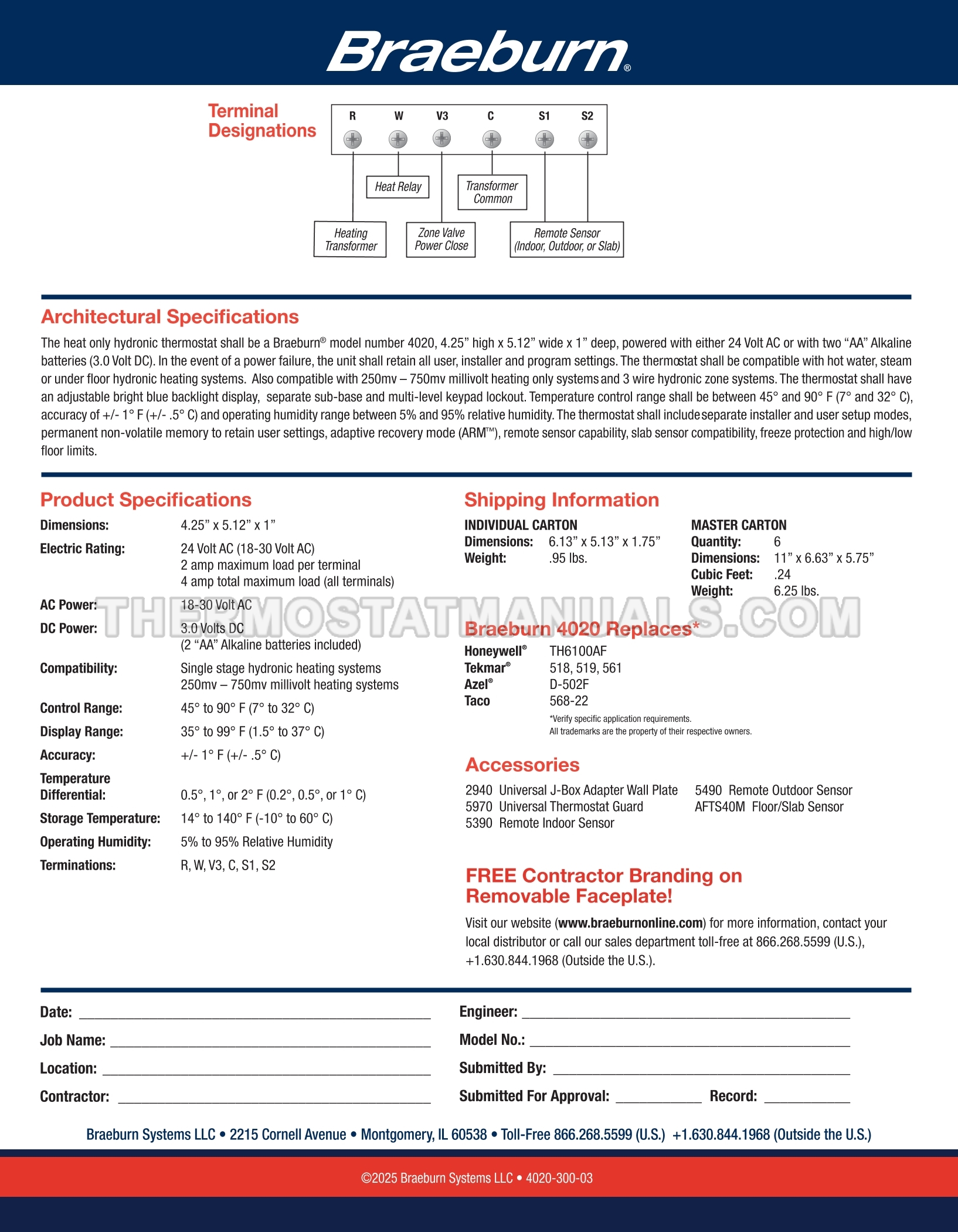 Braeburn 4020 Specifications Sheet