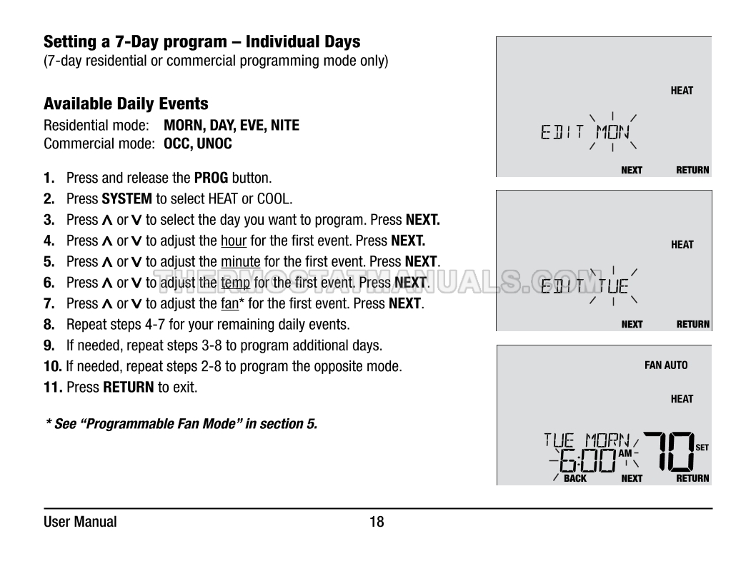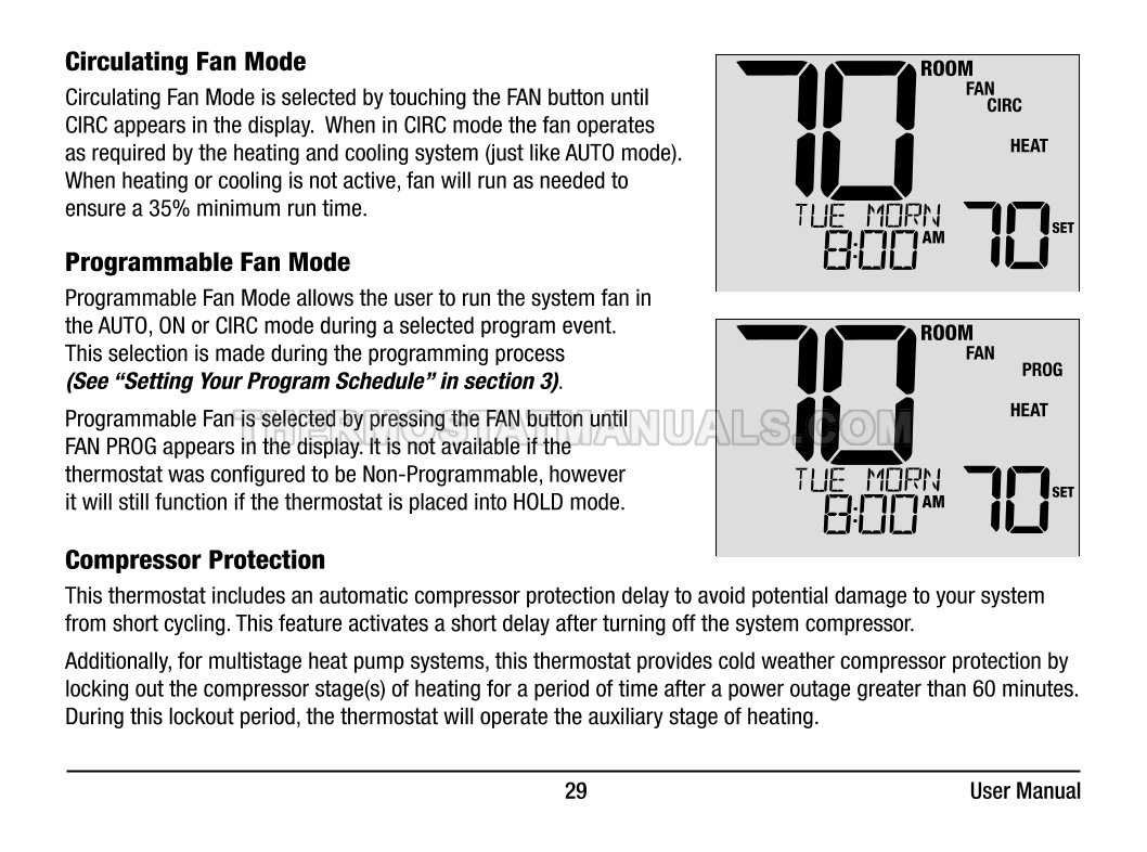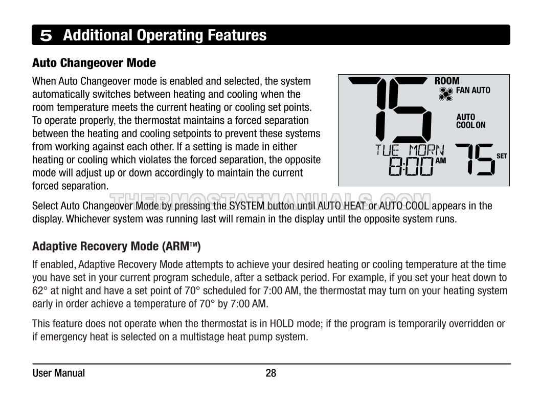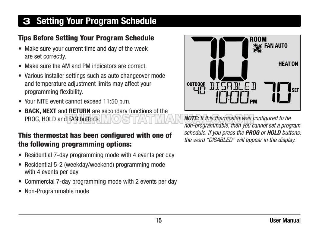 Automatic regulation of the room temperature and energy savings are the main tasks of the Braeburn 4235 Premier. This user manual contains all the information you need to configure the thermostat with commercial mode option, auto changeover, battery or hardwire power, keypad lockout, remote sensing, and dry contact input at the first start-up and further work.