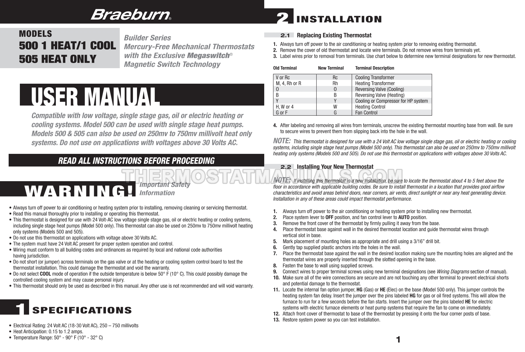 Braeburn 505 User Manual