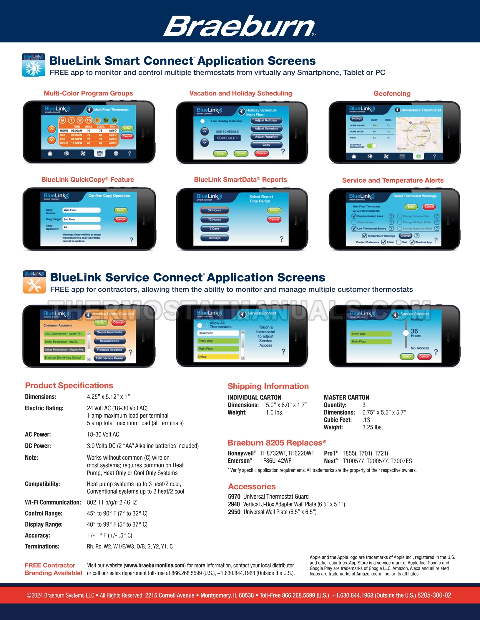 Braeburn 8205 Specifications Sheet