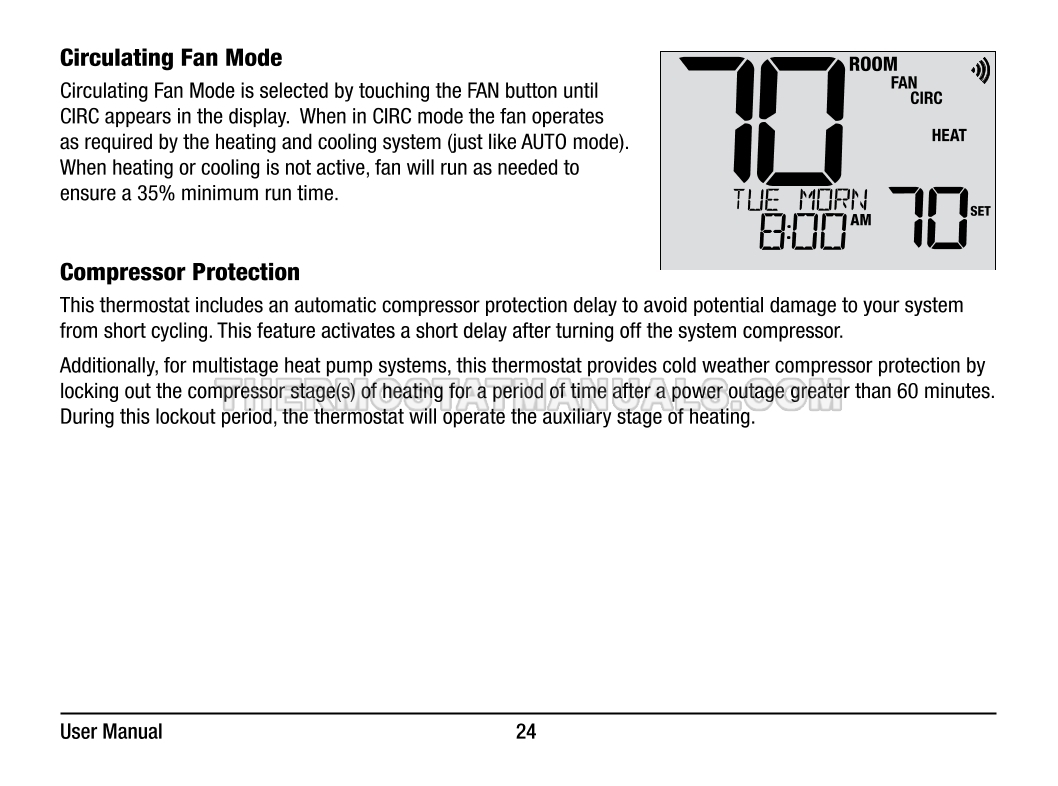 It is necessary to configure the programmable thermostat with 7 day or 5-2 day scheduling, bright blue backlight and auto changeover before starting its work. This will further ensure continuous and correct operation of the Braeburn 8205 Wi-Fi. Study the user manual, which consists of 28 pages in English.