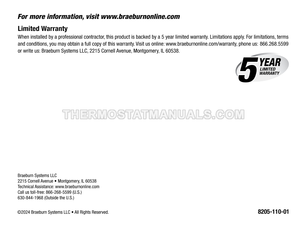 Braeburn 8205 User Manual