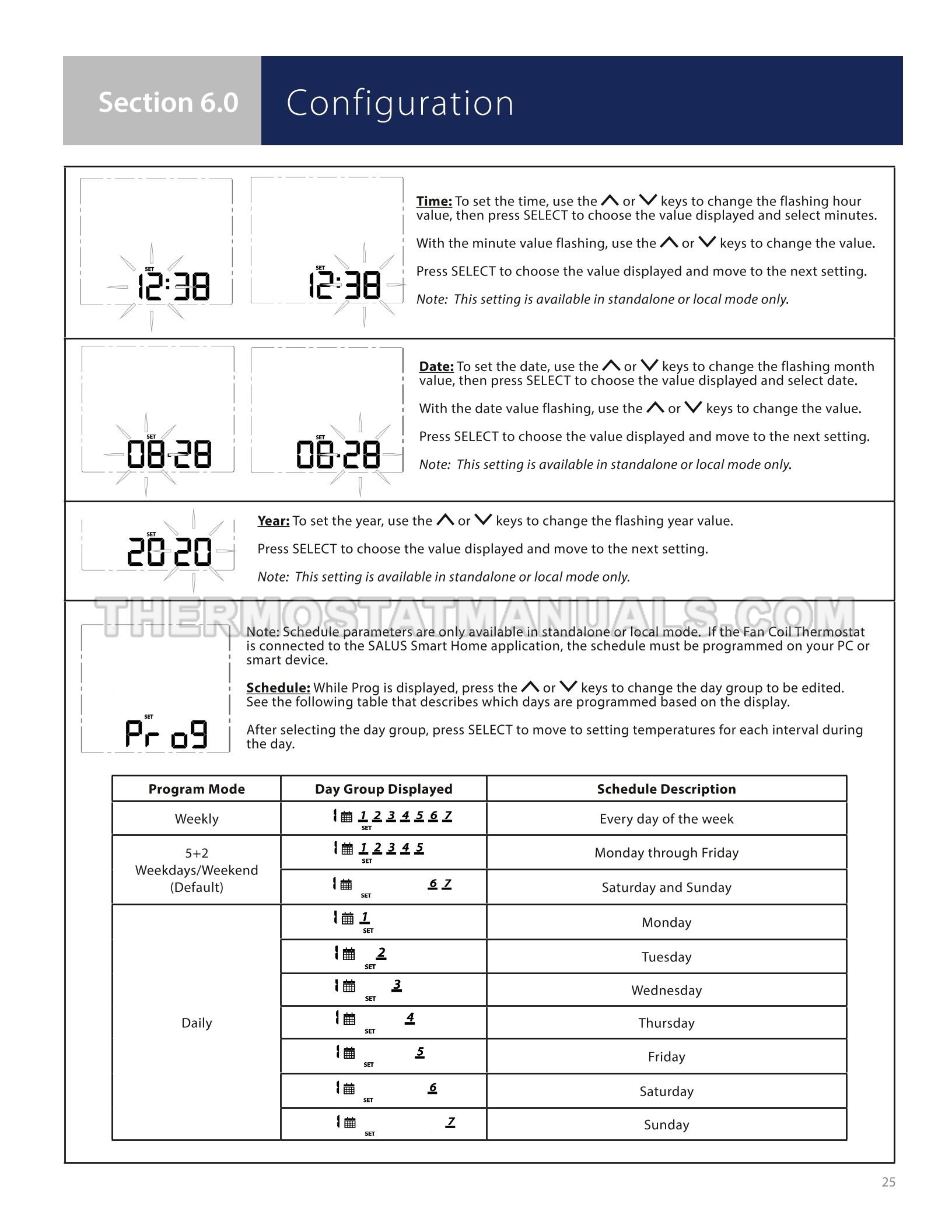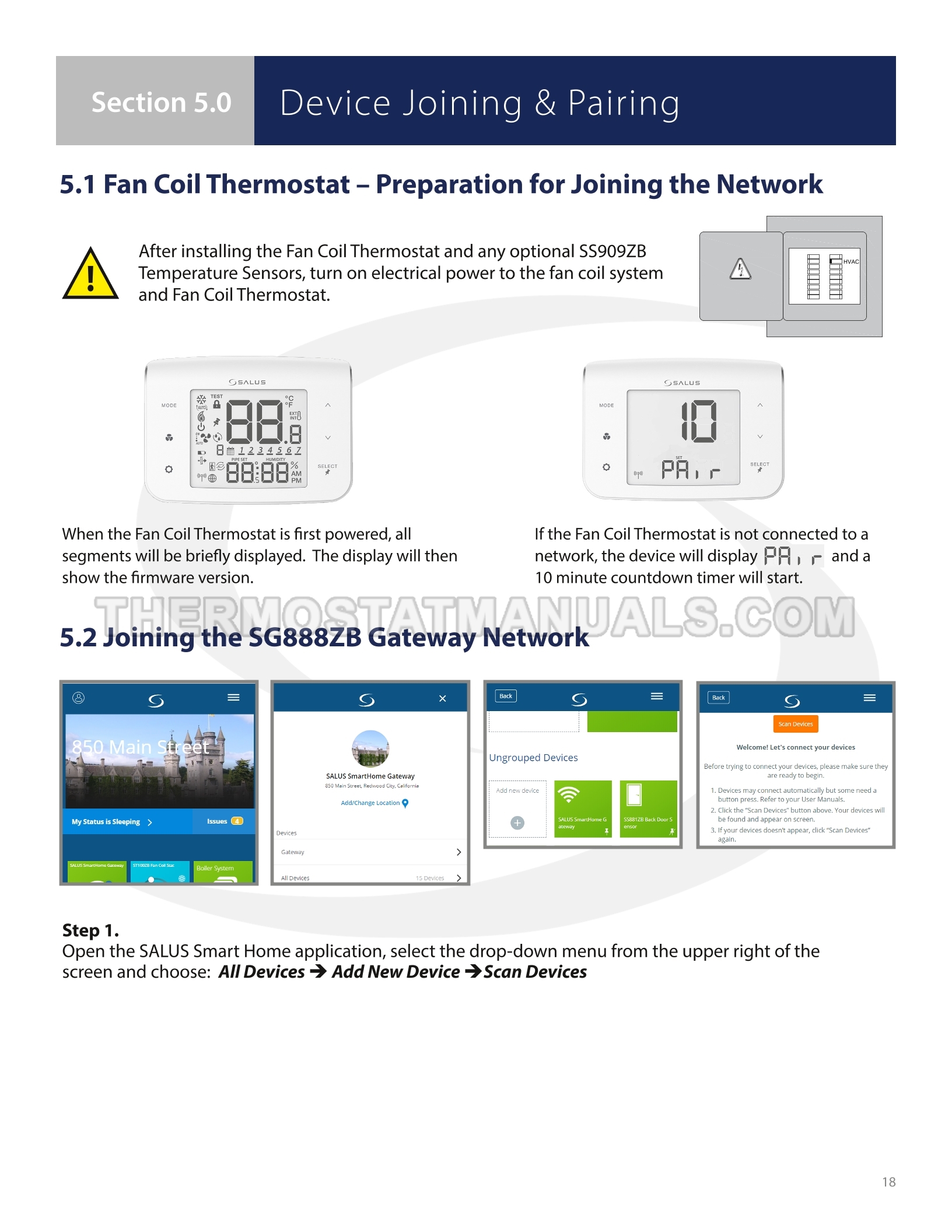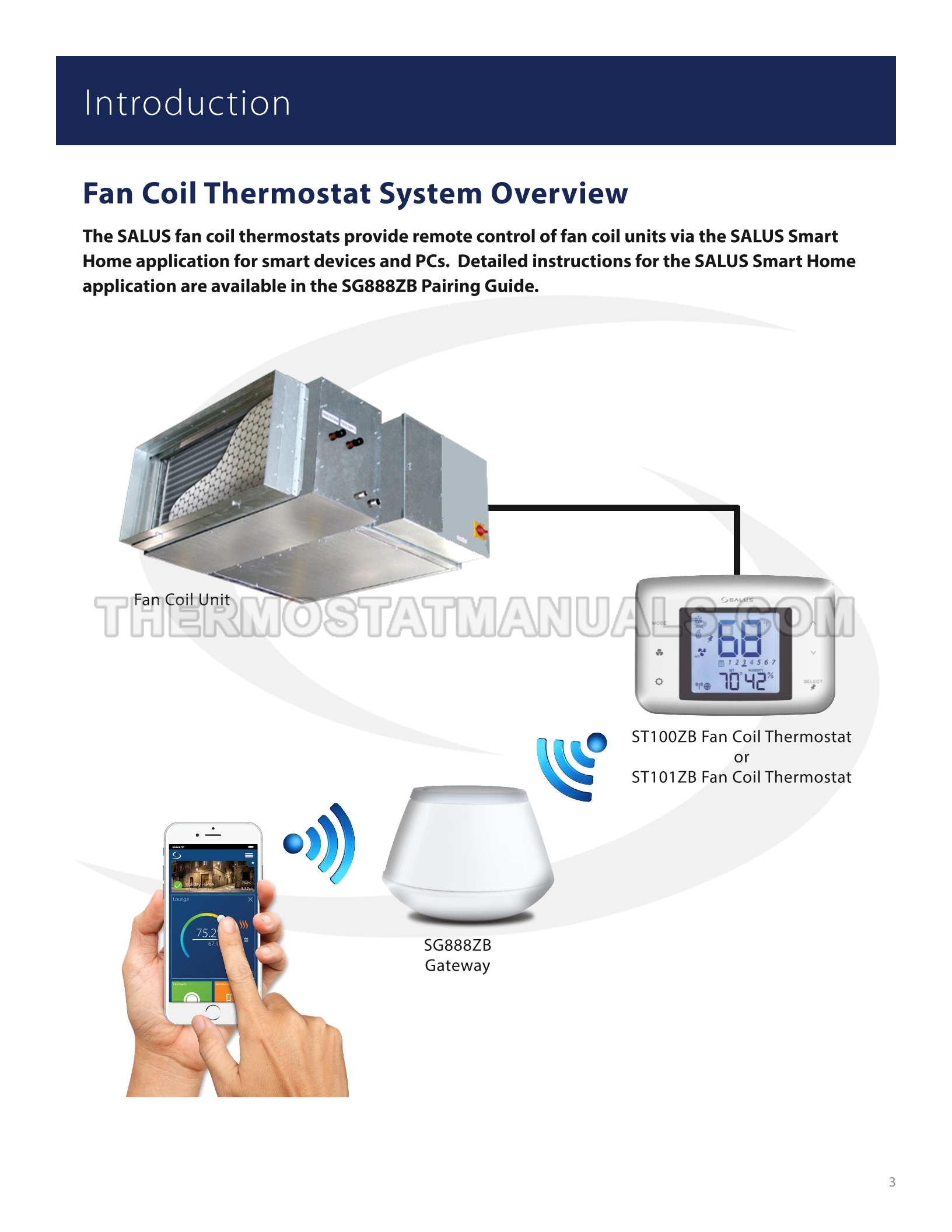 To replace the old thermostat and install the Braeburn ST101ZB, follow the steps described in the installation & operation manual on the 38 pages. This will allow the fan coil thermostat with 24VAC power, backlight, keypad lockout, auto changeover and humidity reading to be installed correctly and proceed to device configuration.