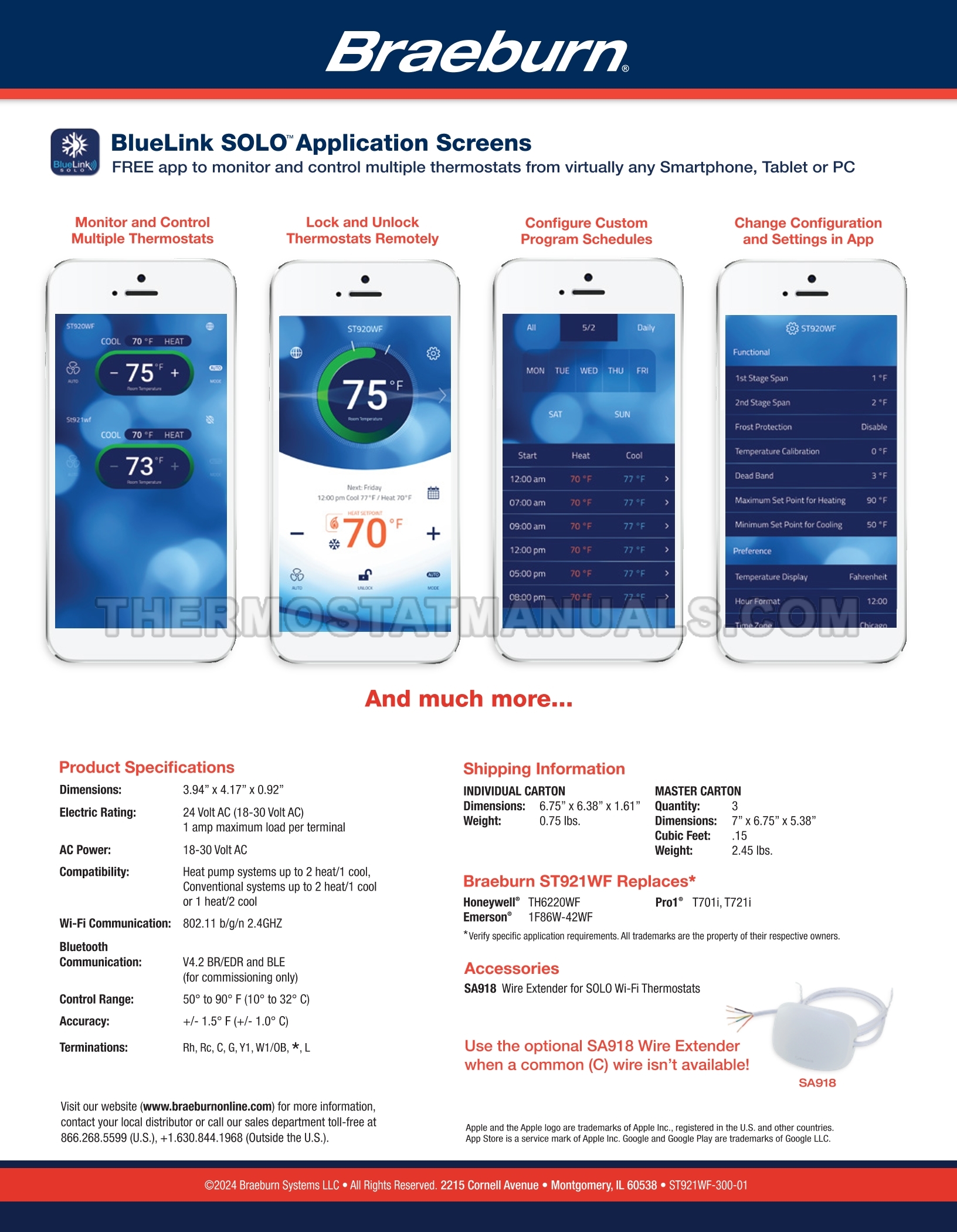 Braeburn ST921WF Specifications Sheet