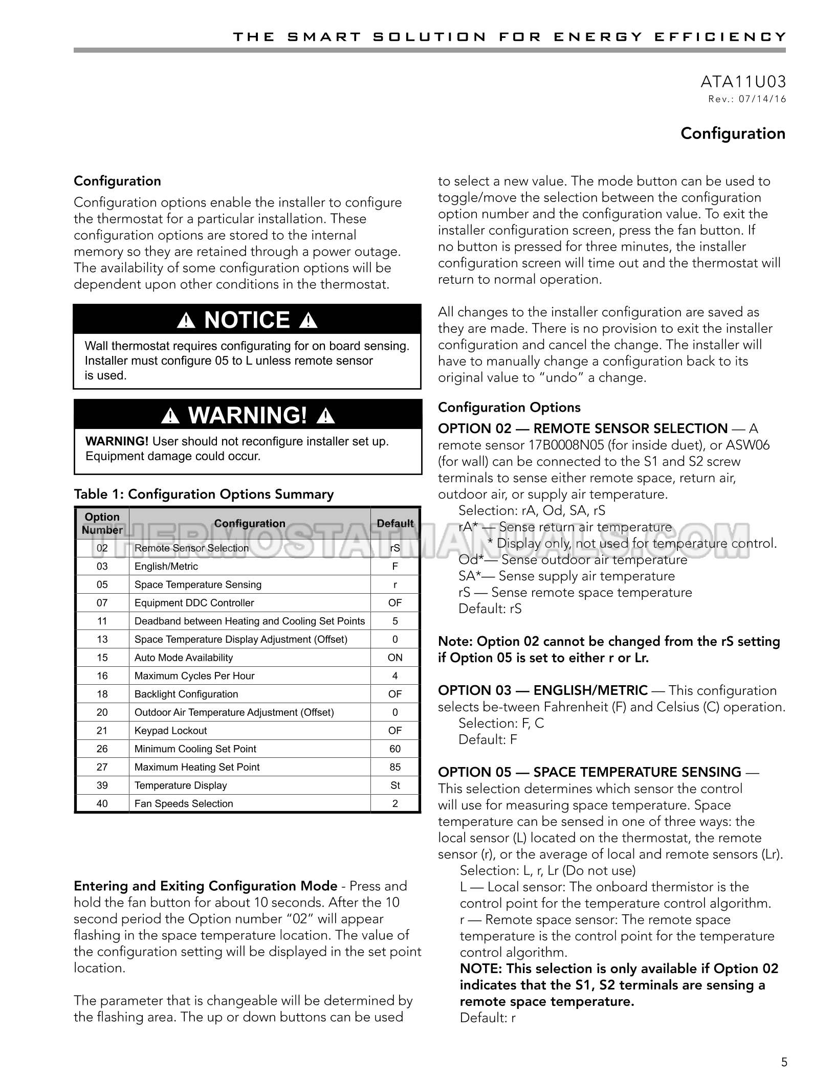 In most houses, installing a Climatemaster ATA11U03 thermostat is a simple task that takes up to 30 minutes. Step-by-step instructions are described in installation manual and simplify the installation and wiring of the thermostat with 1 heat and 1 cool stage, configurable auto or manual changeover and dual fan speed options, so use this document as your basic guide on 12 pages in English.
