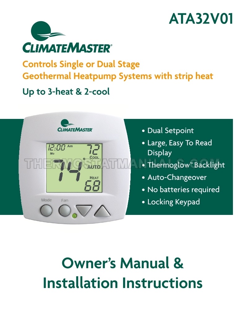 Climatemaster ATA32V01 Owner's Manual & Installation Instructions