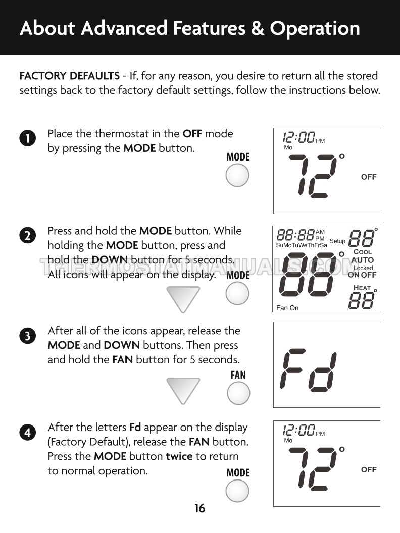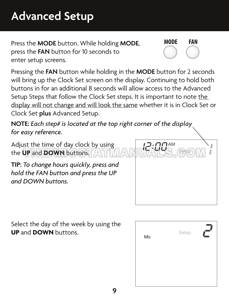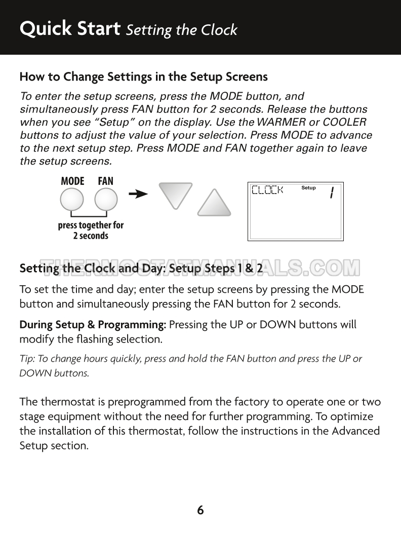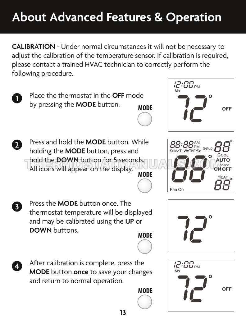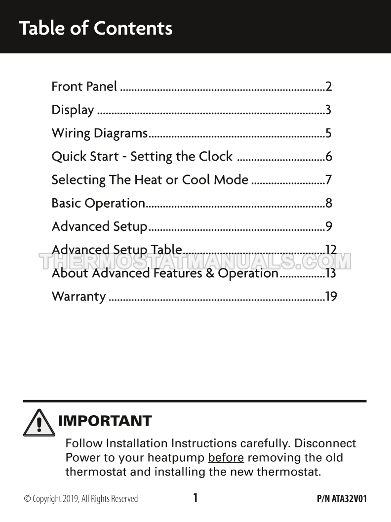 To replace the old thermostat and install the Climatemaster ATA32V01 CM100, follow the steps described in the owner's manual & installation instructions on the 21 pages. This will allow the multi stage thermostat with time clock, day of week display and flexible heating and cooling control to be installed correctly and proceed to device configuration.