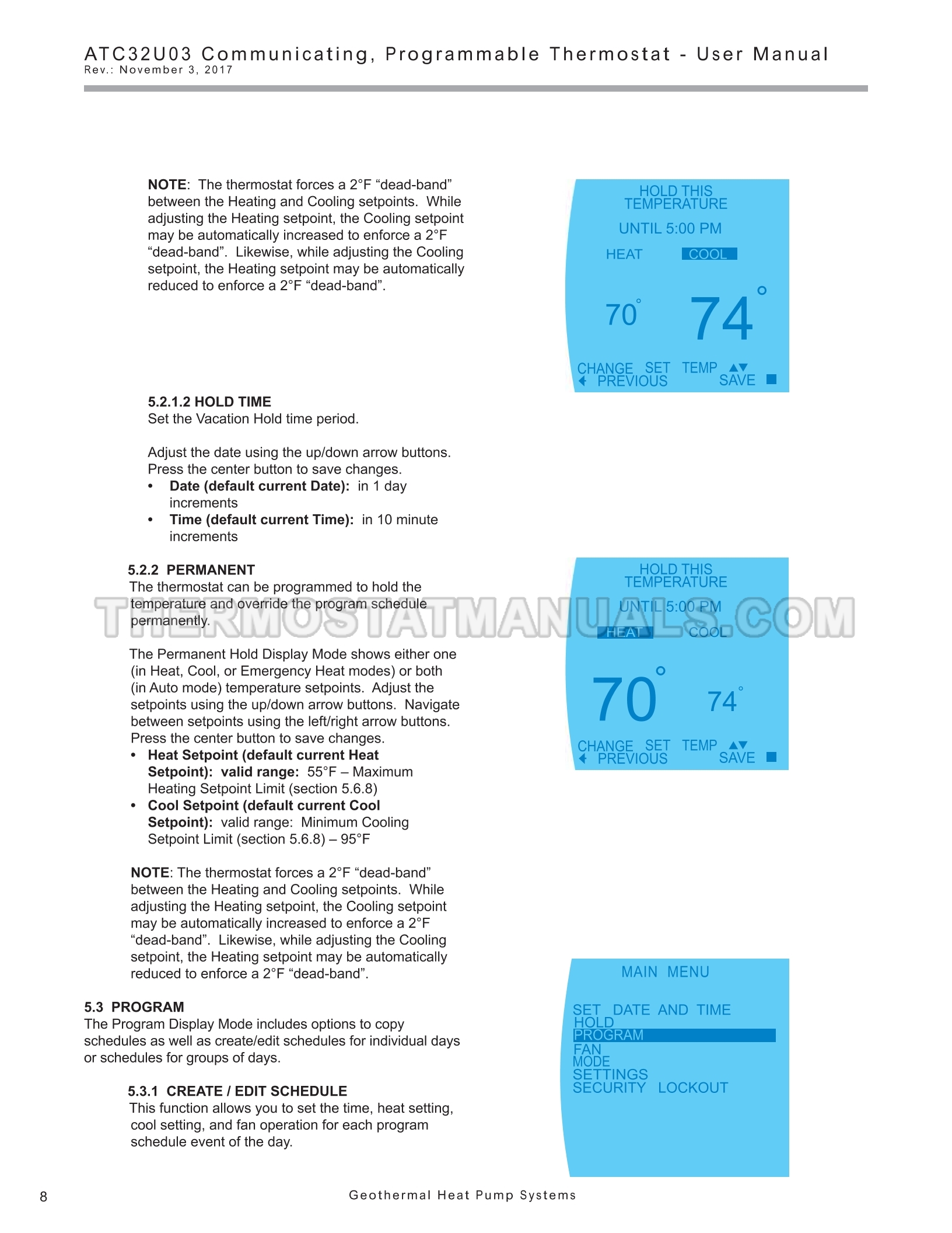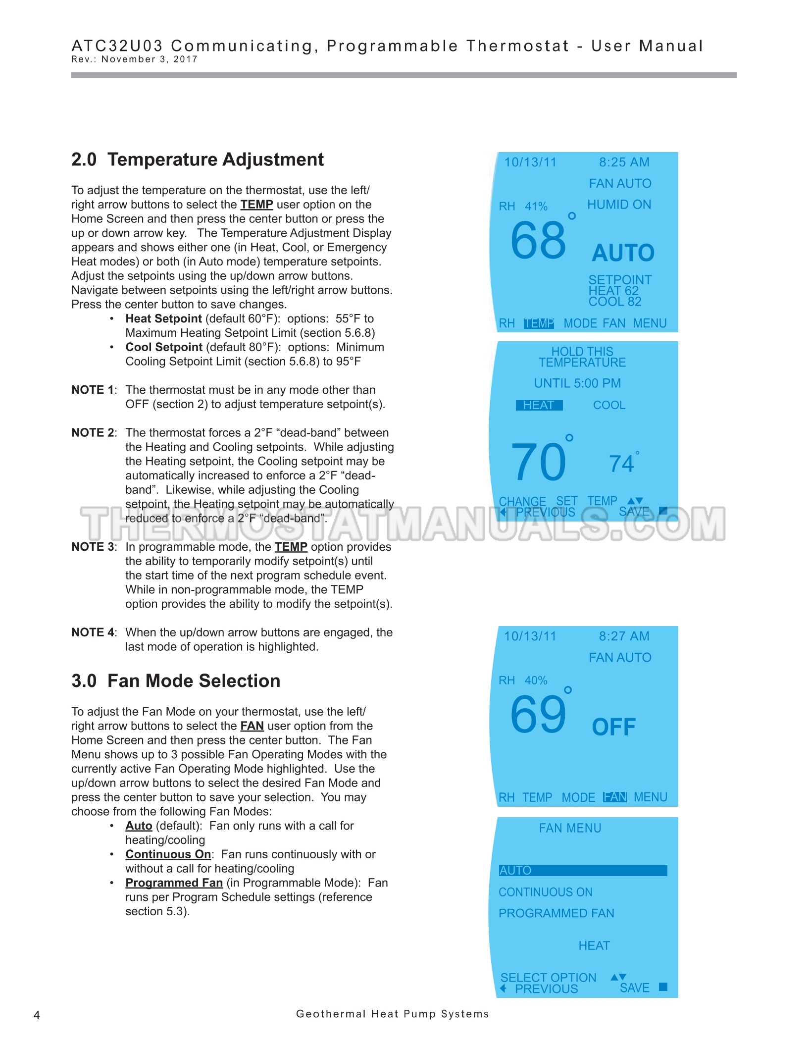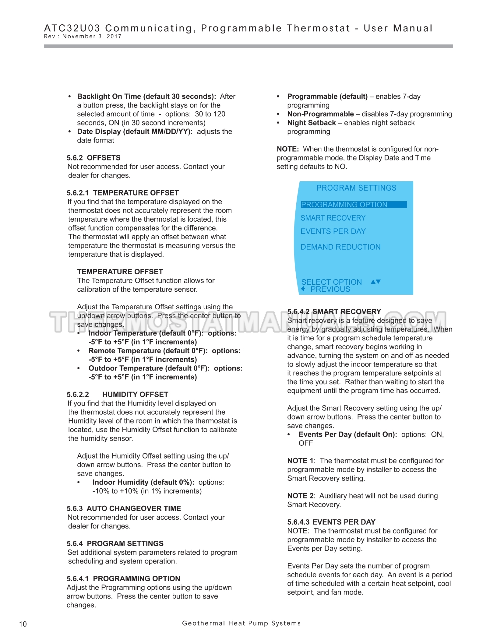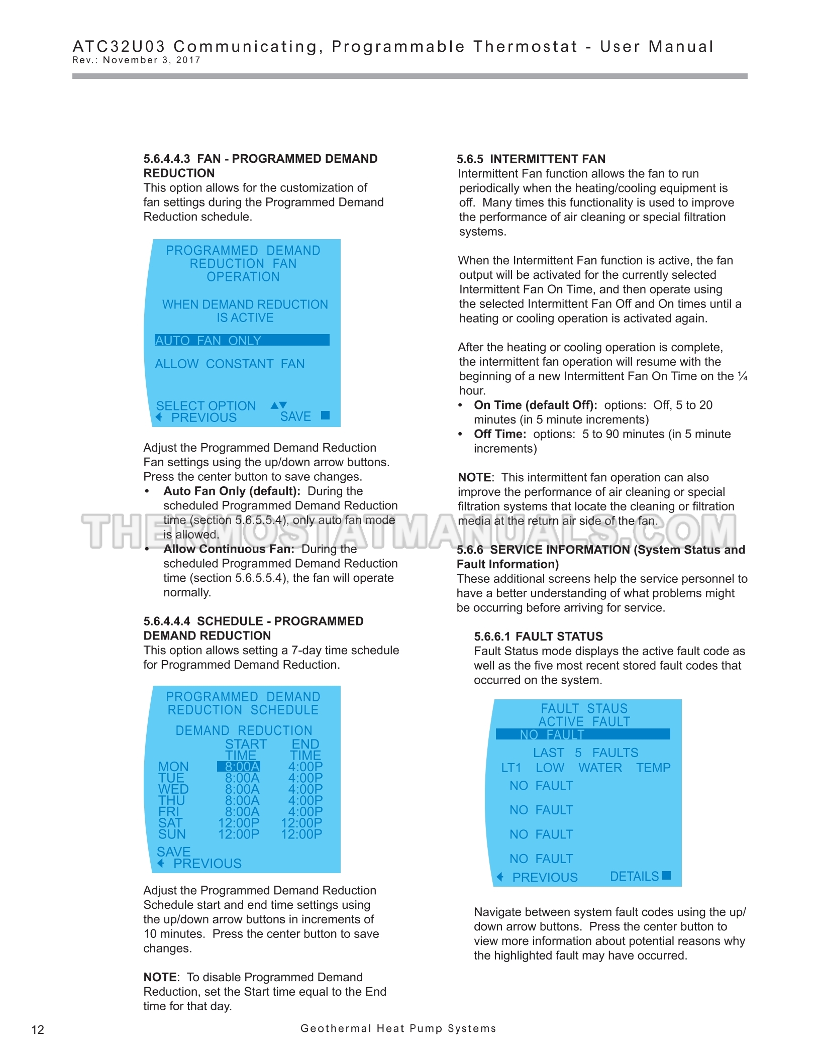 The Climatemaster ATC32U03C programmable thermostat offering advanced communication for geothermal systems to enhance comfort and reduce energy use thermostat can be used to manage the temperature of the rooms where it is installed. This user manual contains the 16 pages of information you need to get started with the device and configure for different applications based on needs correctly.