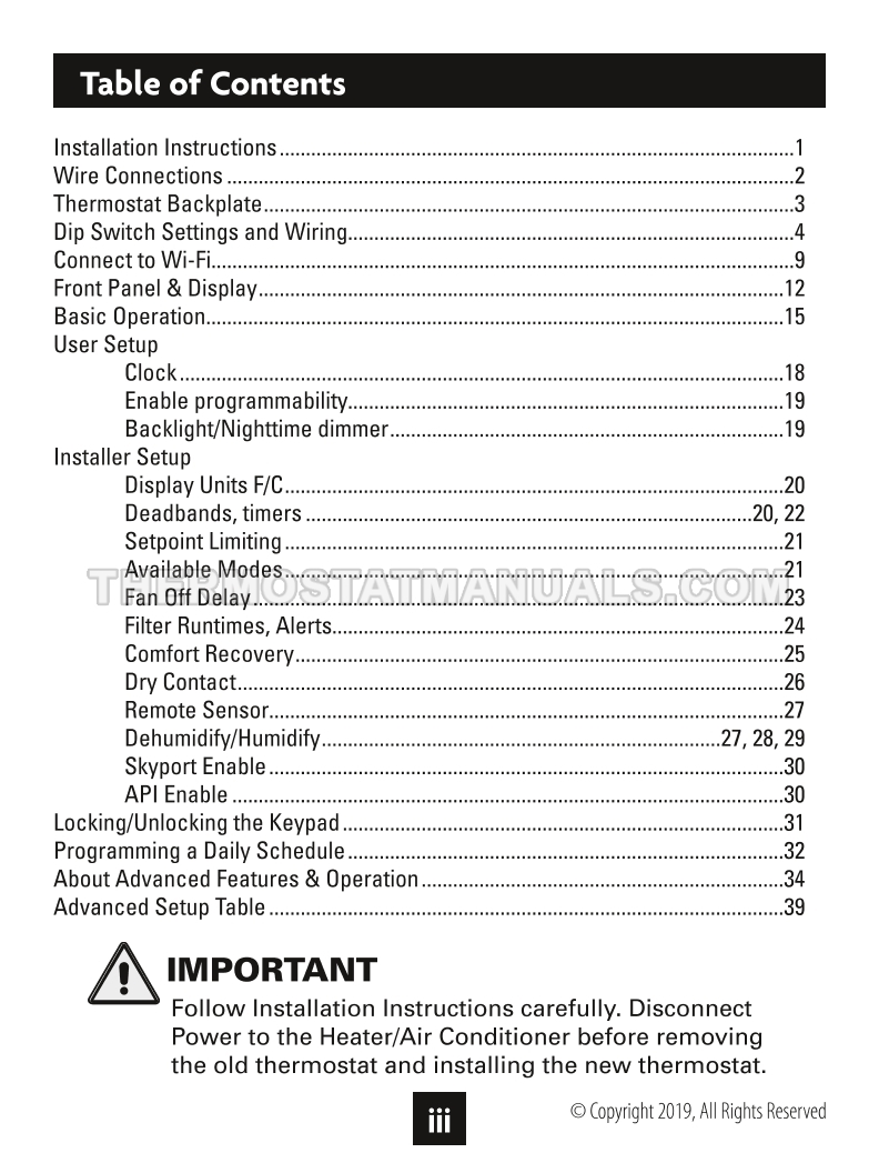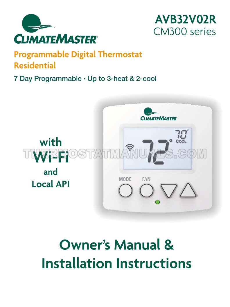 In most houses, installing a Climatemaster AVB32V02R CM300 thermostat is a simple task that takes up to 30 minutes. Step-by-step instructions are described in owner's manual & installation instructions and simplify the installation and wiring of the smart thermostat with mobile and web app access for remote monitoring and California Title 24 compliance, so use this document as your basic guide on 47 pages in English.