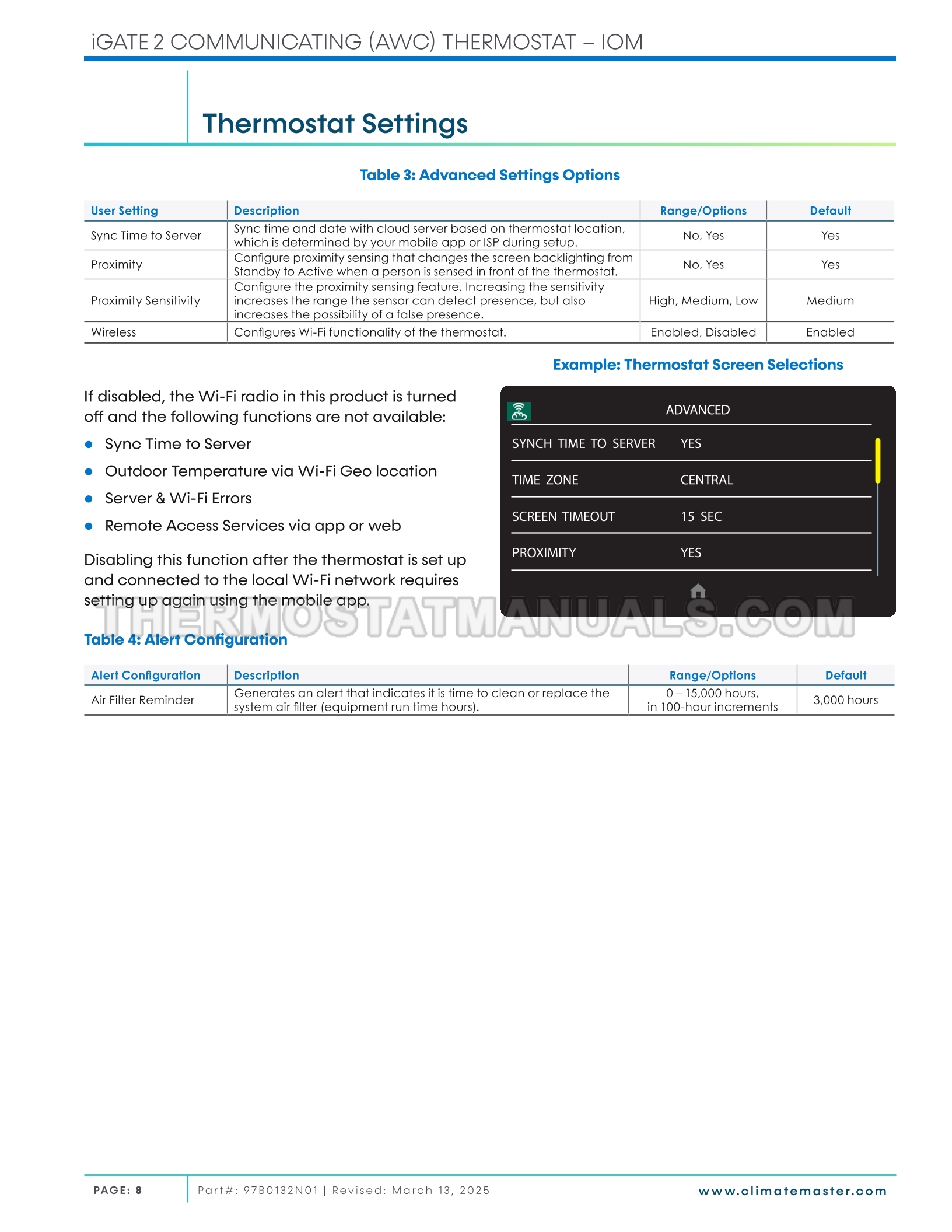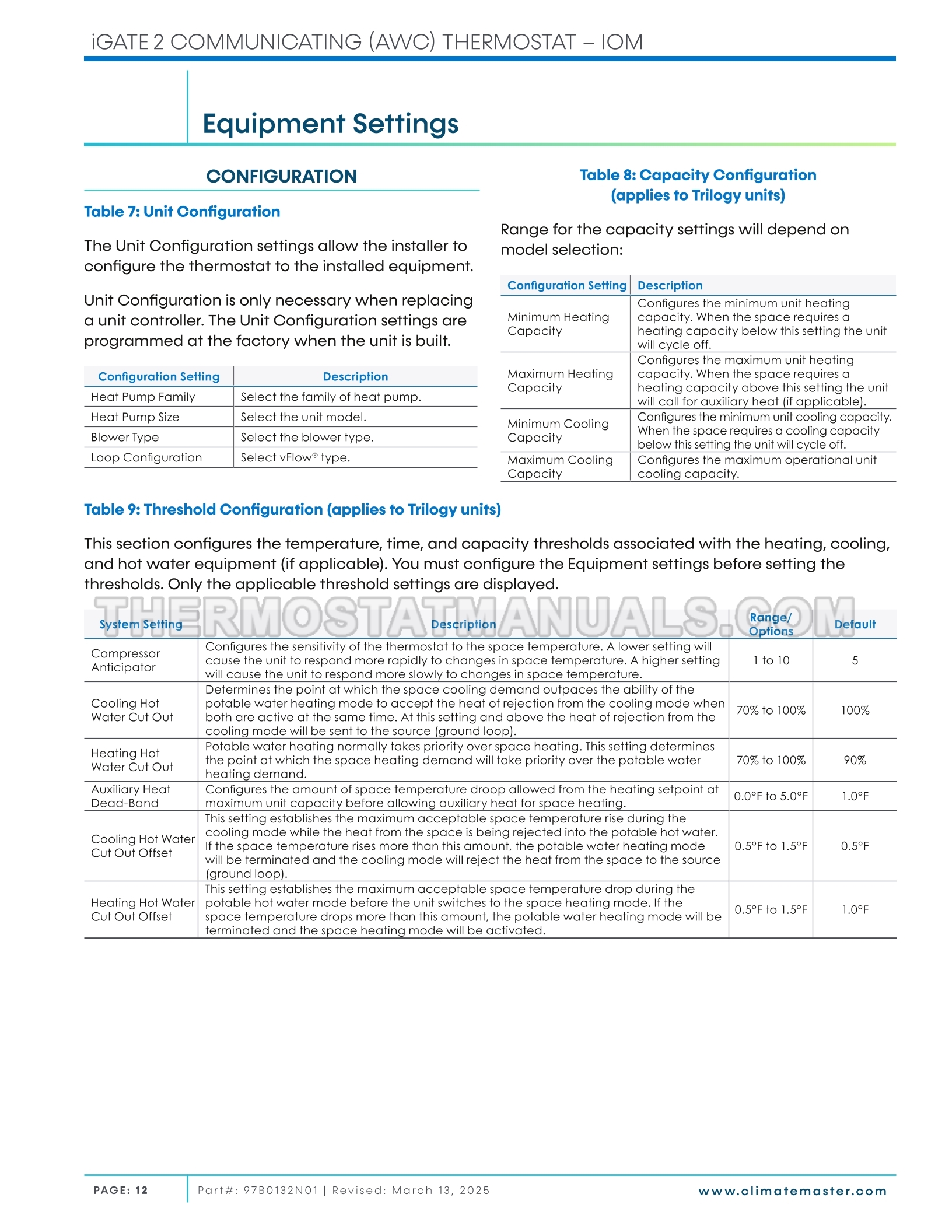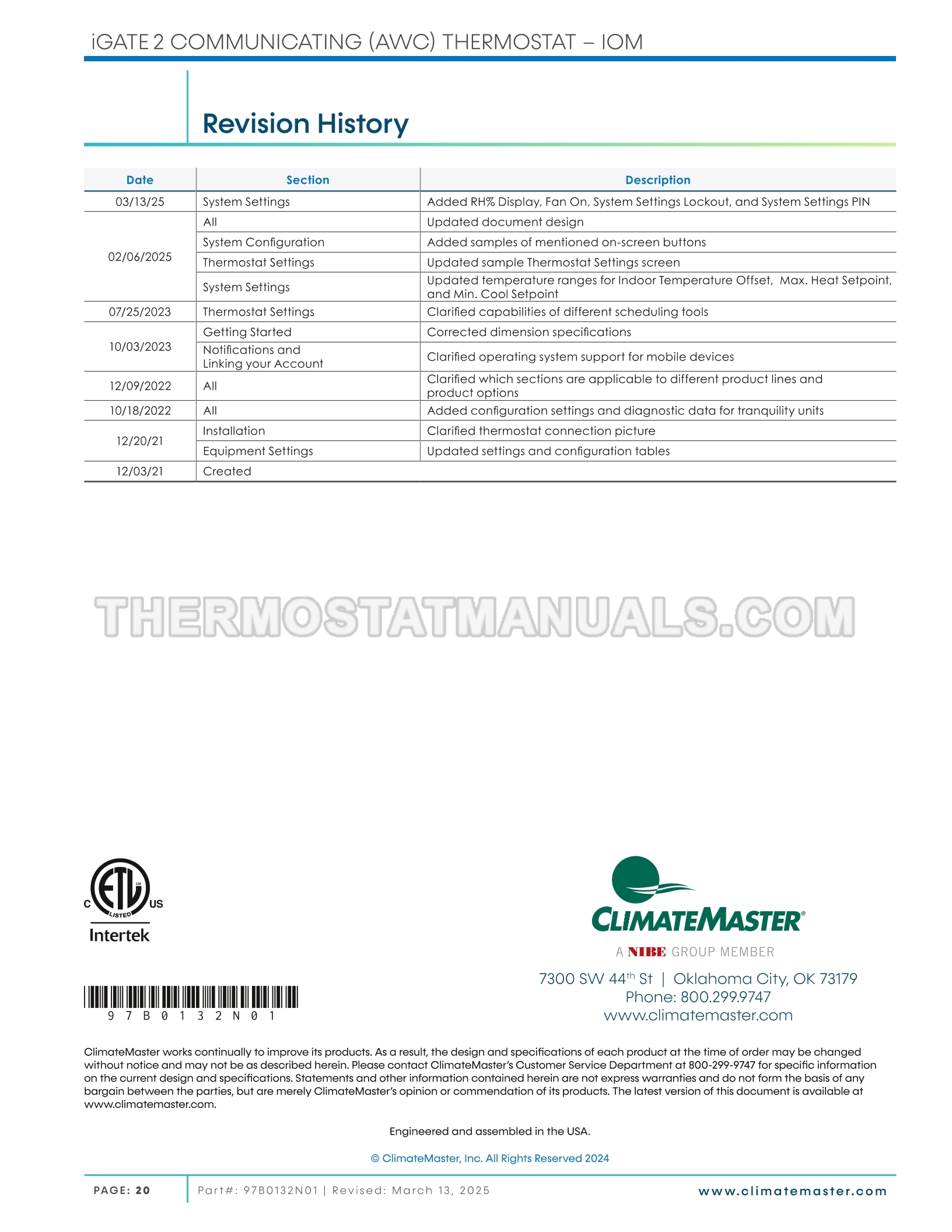 To replace the old thermostat and install the Climatemaster AWC99U01, follow the steps described in the installation, operation & maintenance manual on the 20 pages. This will allow the thermostat offering remote access, color display and flexible 7 day scheduling for enhanced comfort to be installed correctly and proceed to device configuration.