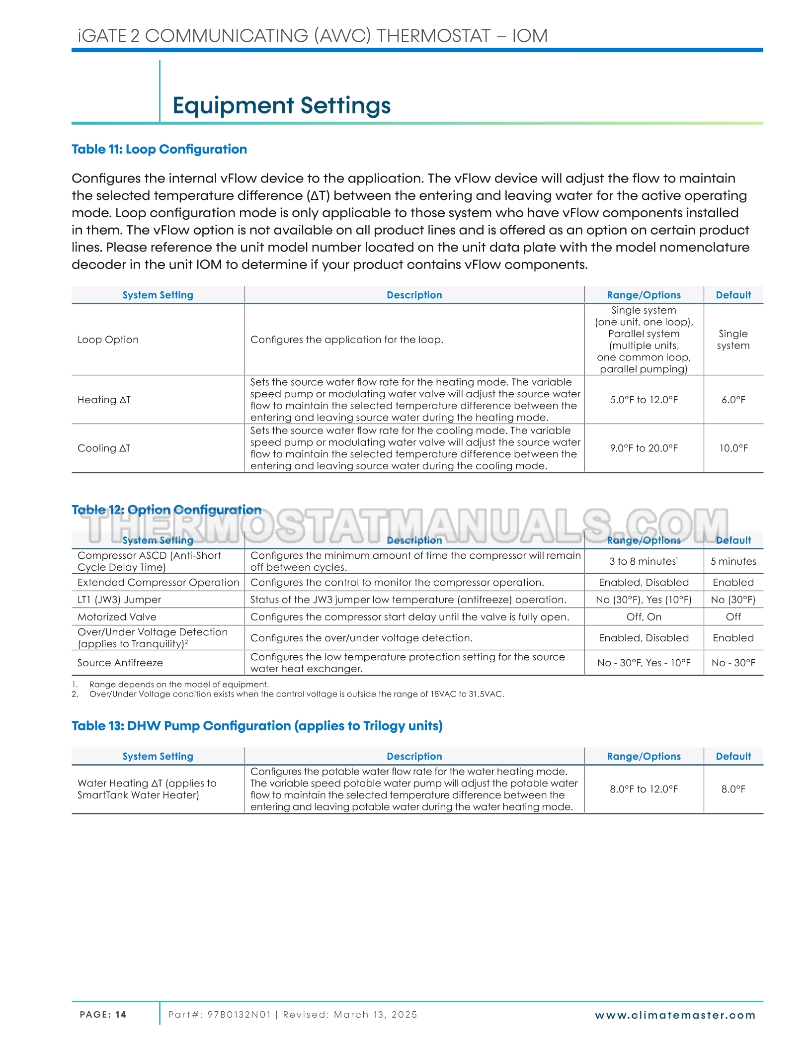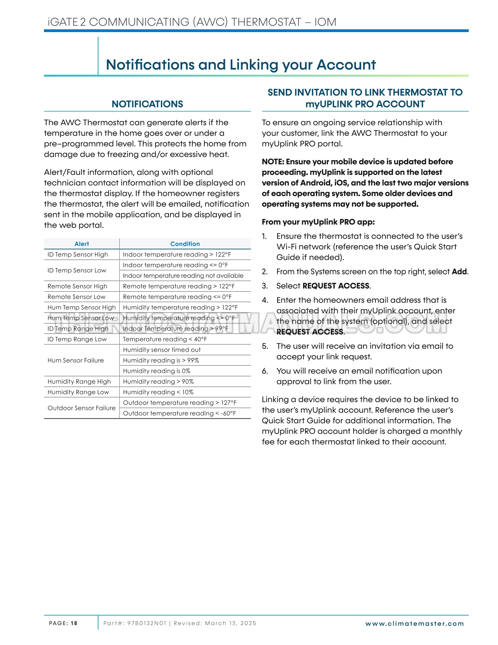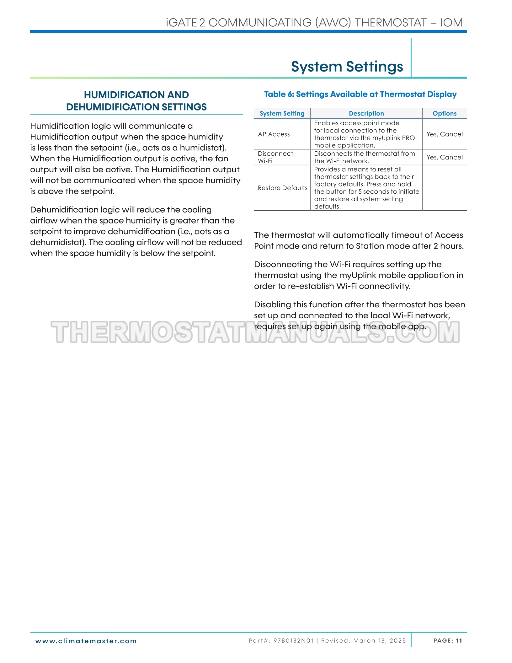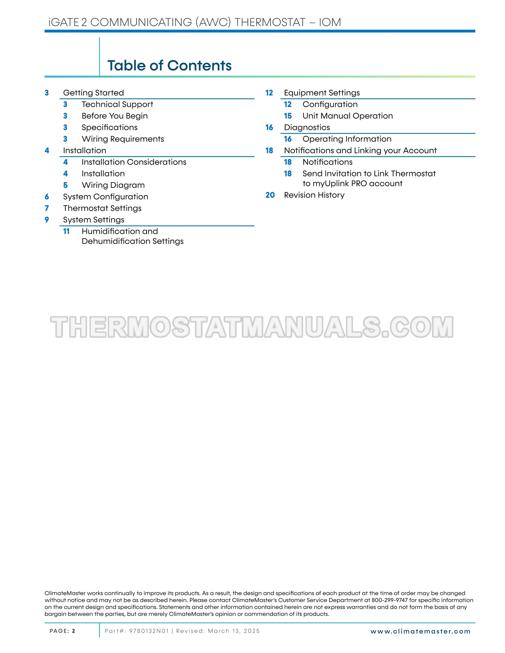 To replace the old thermostat and install the Climatemaster AWC99U01, follow the steps described in the installation, operation & maintenance manual on the 20 pages. This will allow the thermostat offering remote access, color display and flexible 7 day scheduling for enhanced comfort to be installed correctly and proceed to device configuration.