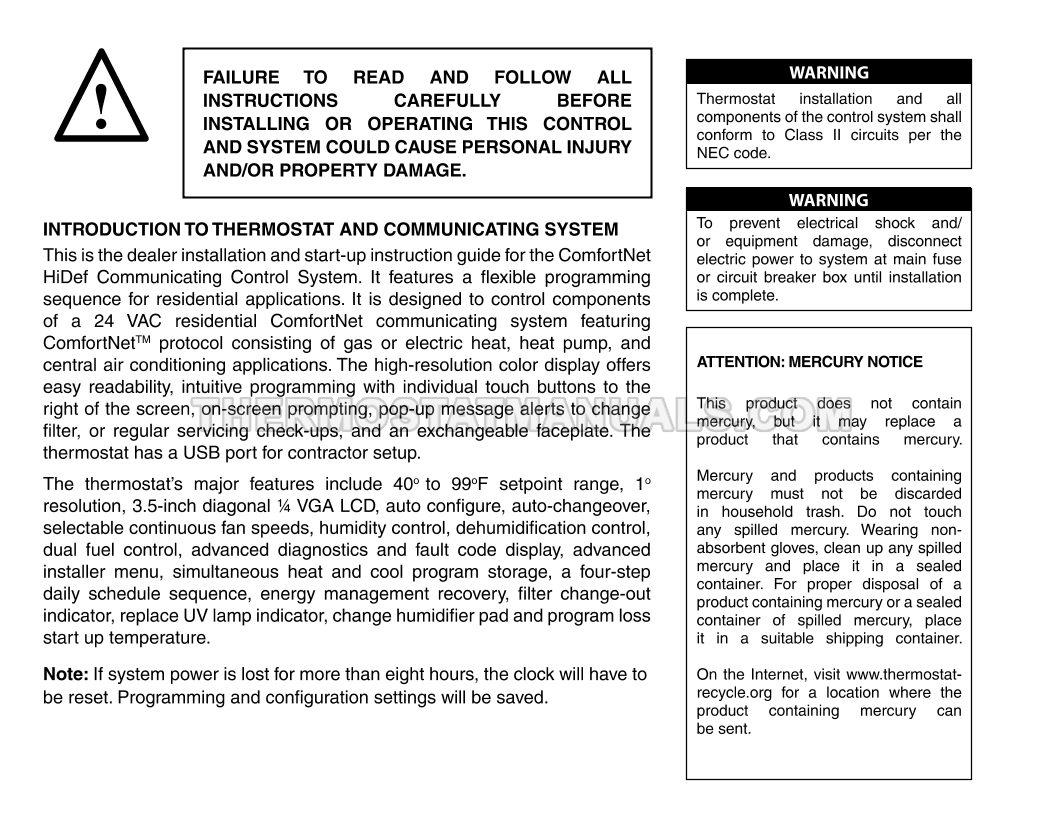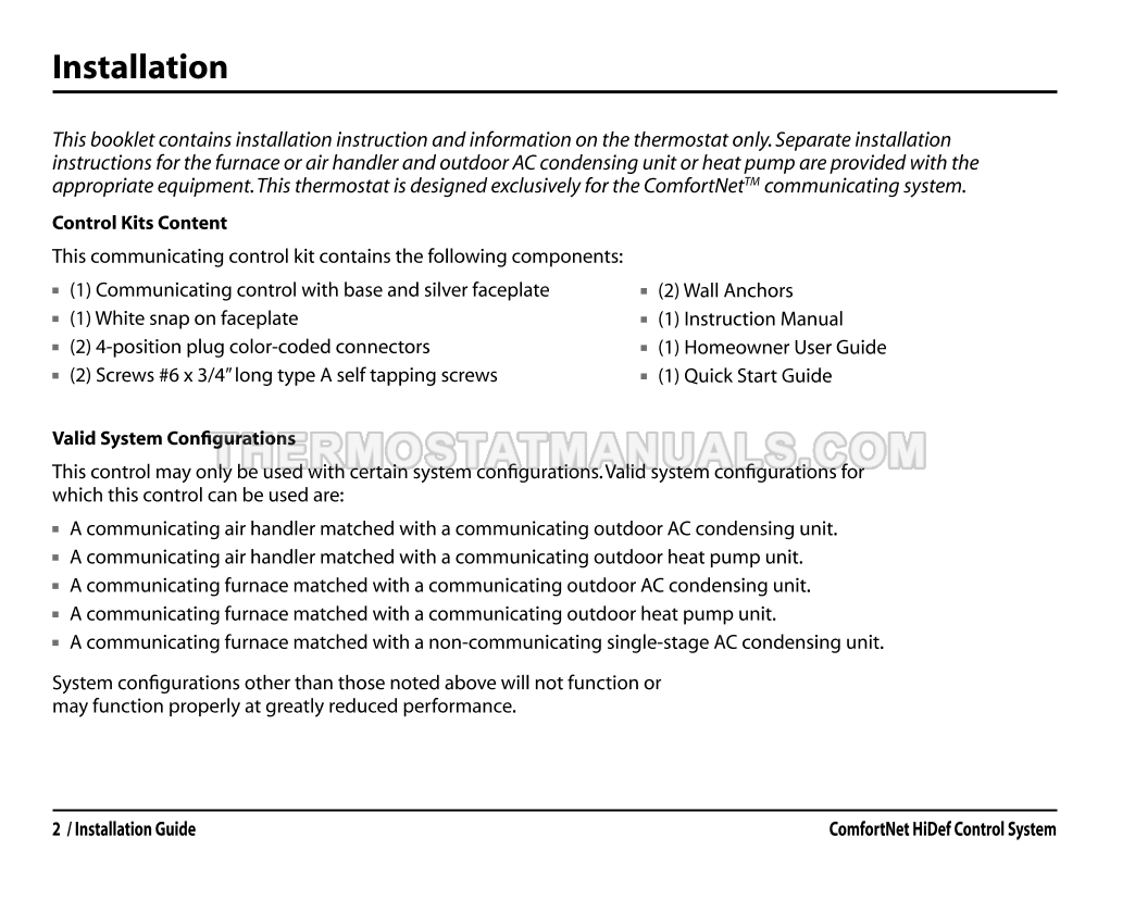 Replace your old thermostat with a new ComfortNet CTK02 HiDef communicating control system thermostat and use installation guide for the correct sequence of your actions. You can start saving by improving the energy efficiency of your home.