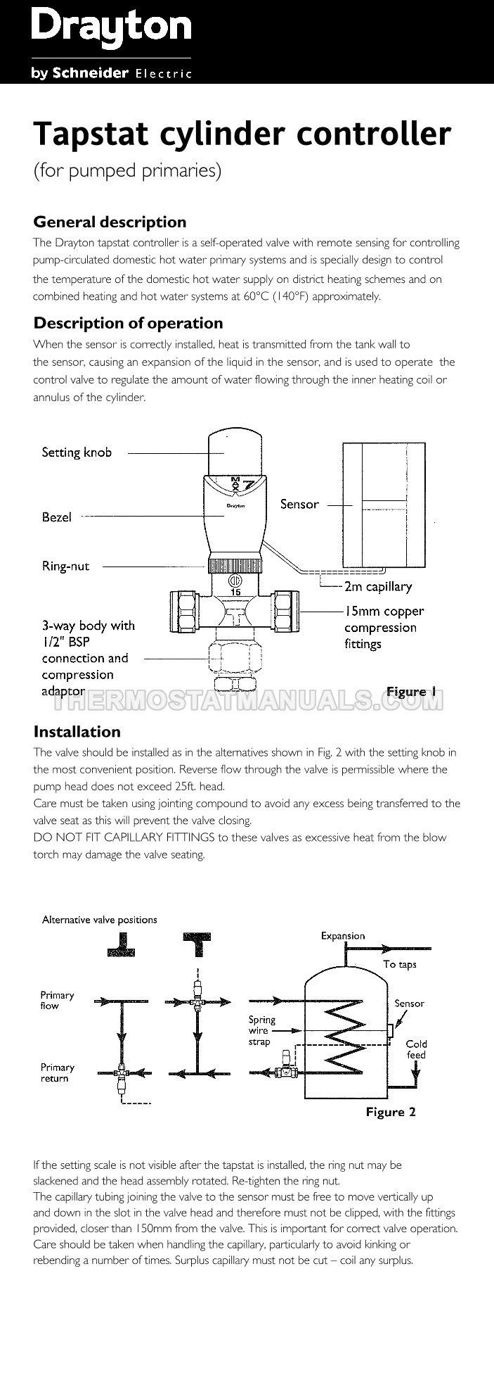 Learn how to install a Drayton 07 45 015 Tapstat thermostat to control your energy bills. This installation instructions describes in details the sequence of steps required to connect the self-acting cylinder thermostat with 15mm 2-way valve for safe and efficient hot water control.