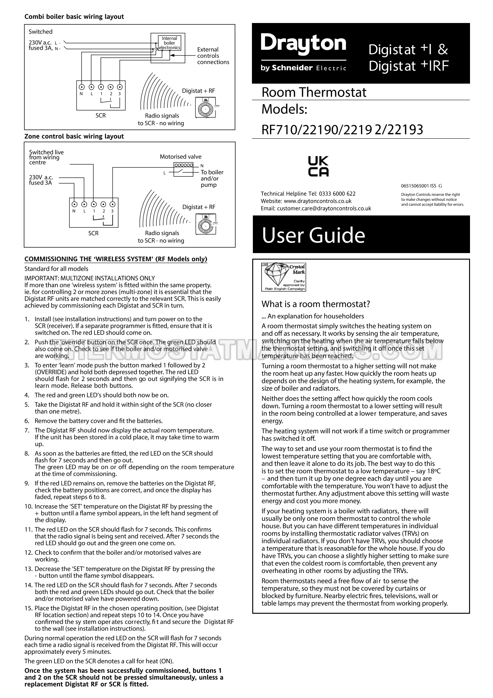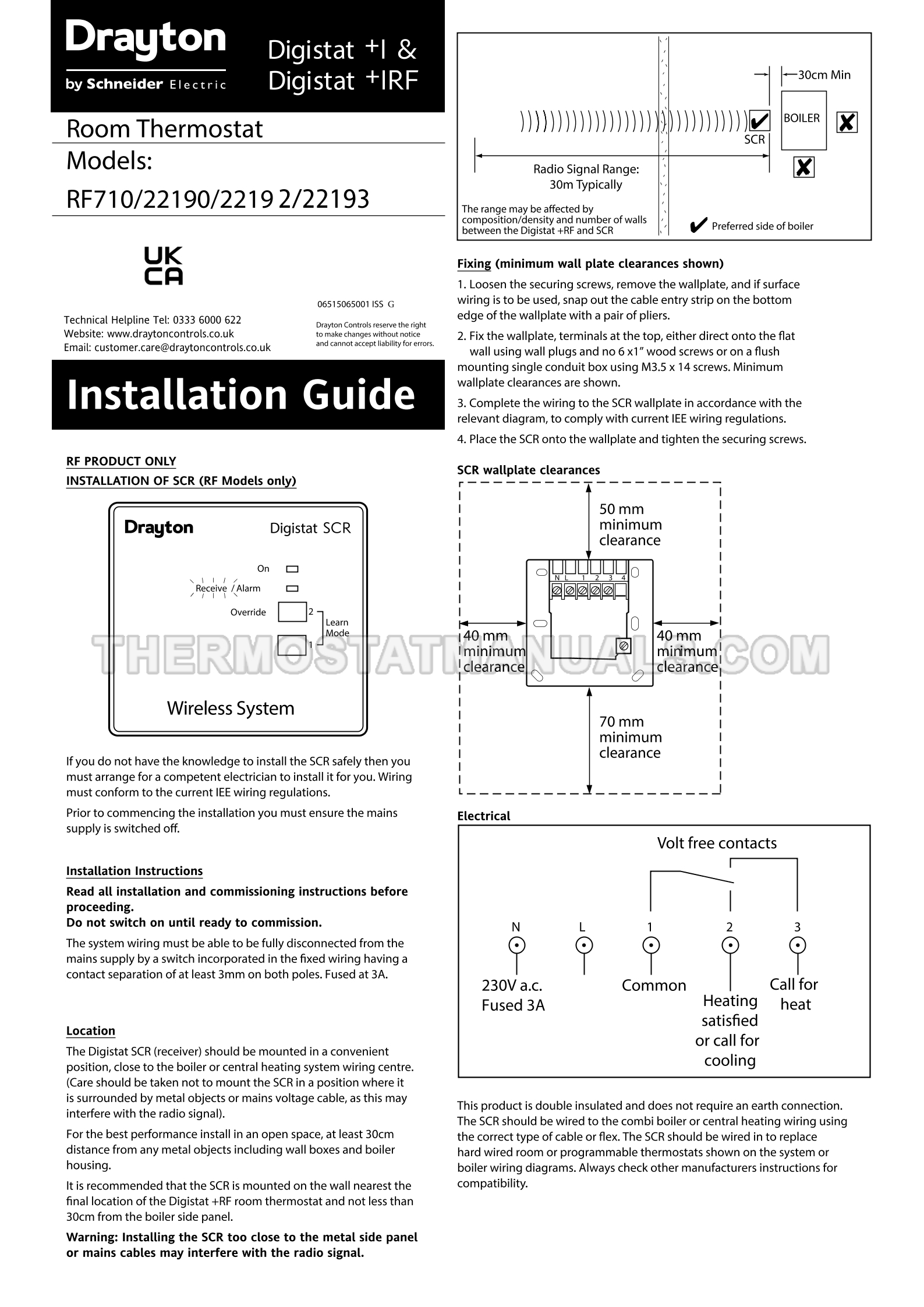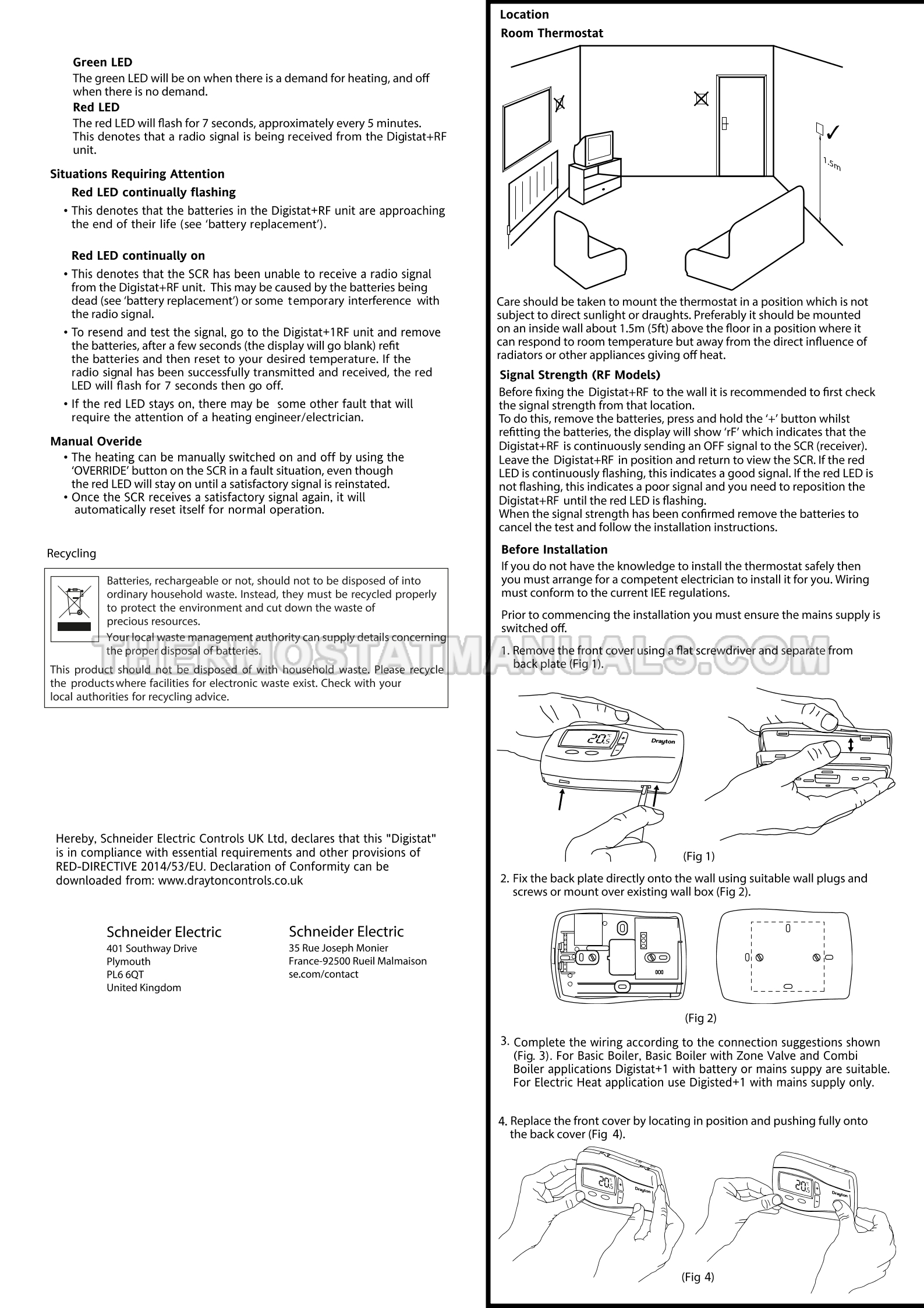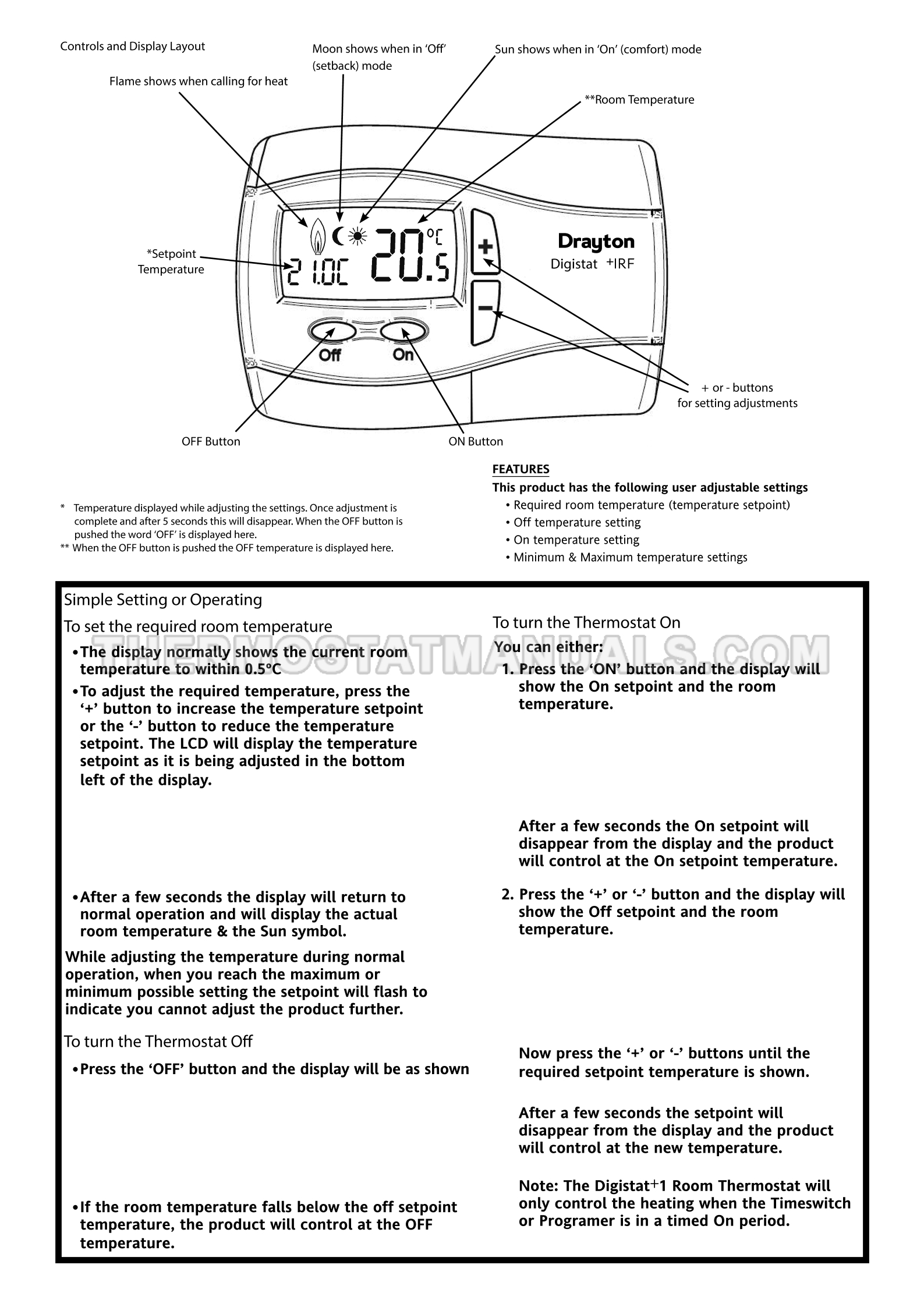 To replace the old thermostat and install the Drayton Digistat+1, follow the steps described in the installation & user guide on the 6 pages. This will allow the easy-to-use wired thermostat with ON/OFF load compensation and tamper-proof min/max temperature limits to be installed correctly and proceed to device configuration.