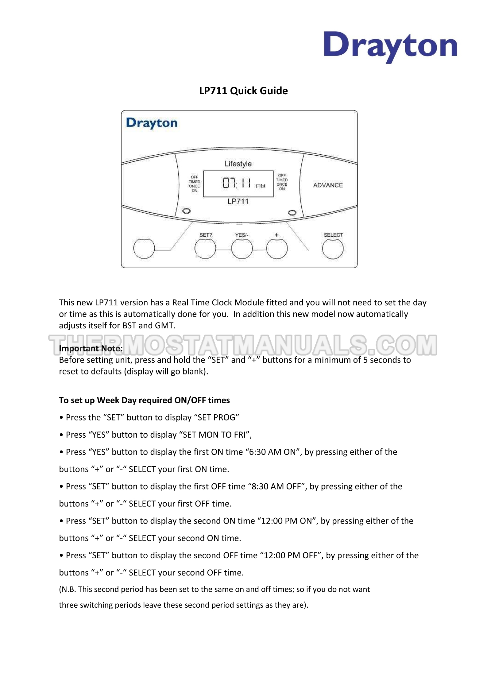 Drayton LP711 Quick Guide