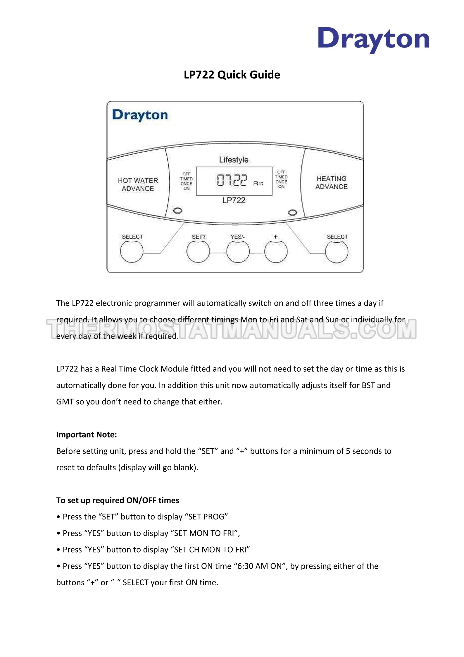 Drayton LP722 Quick Guide