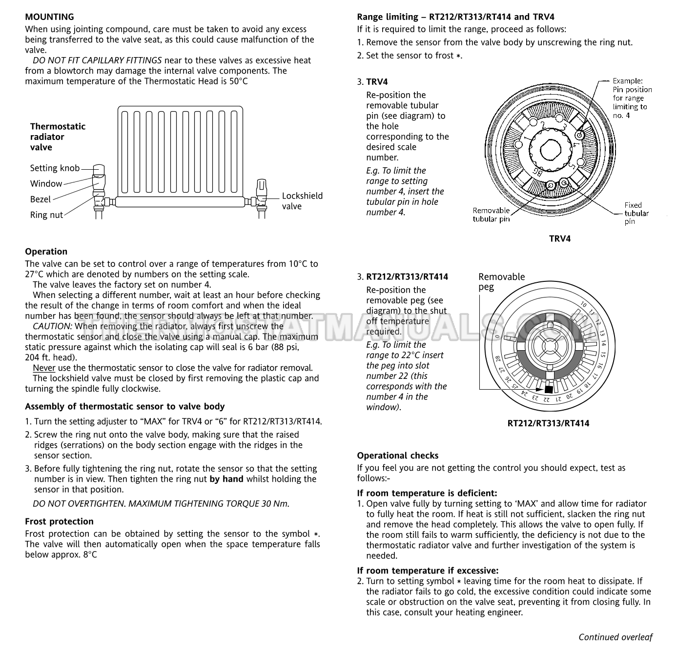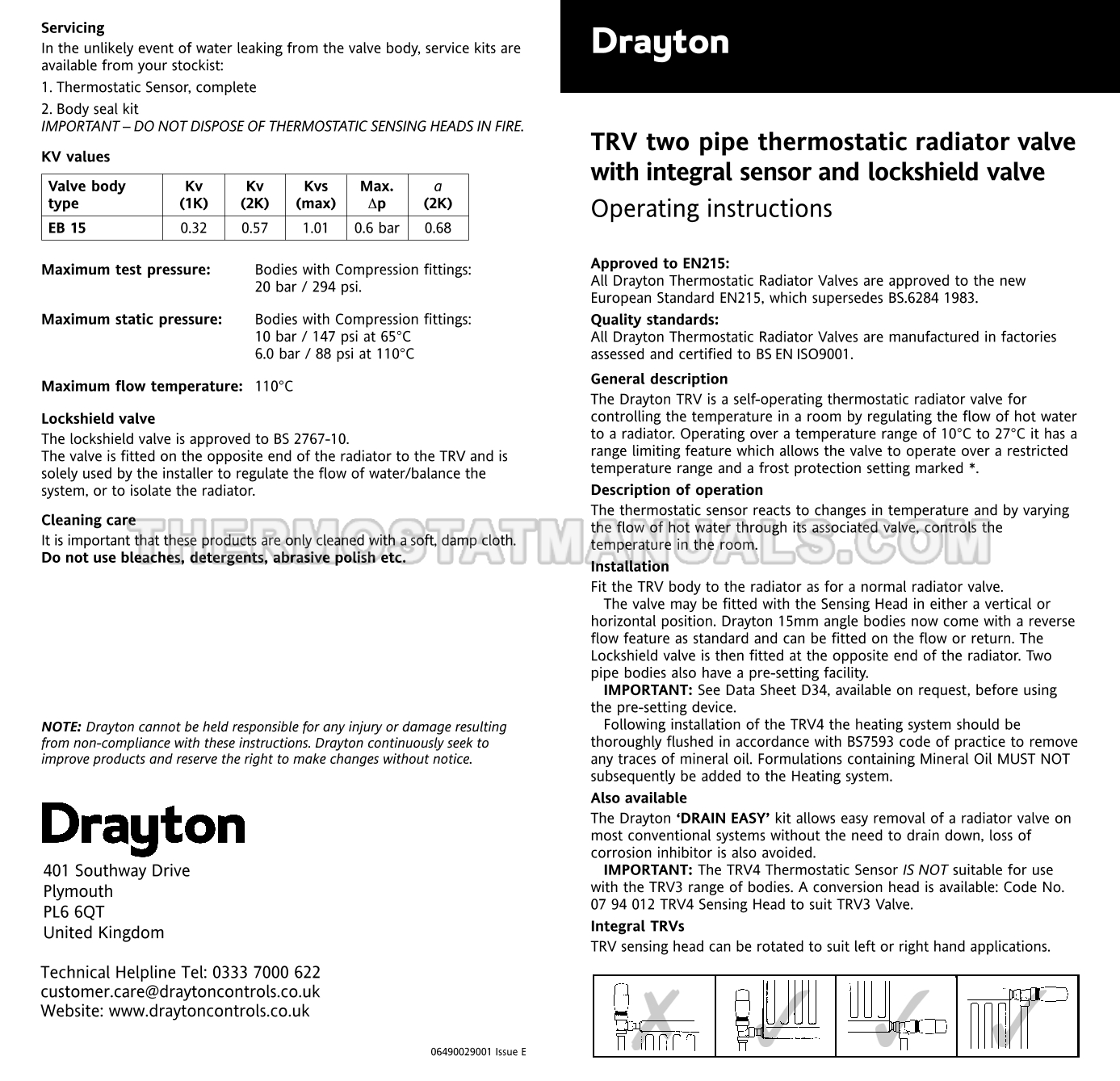Drayton TRV4 Operating Instructions