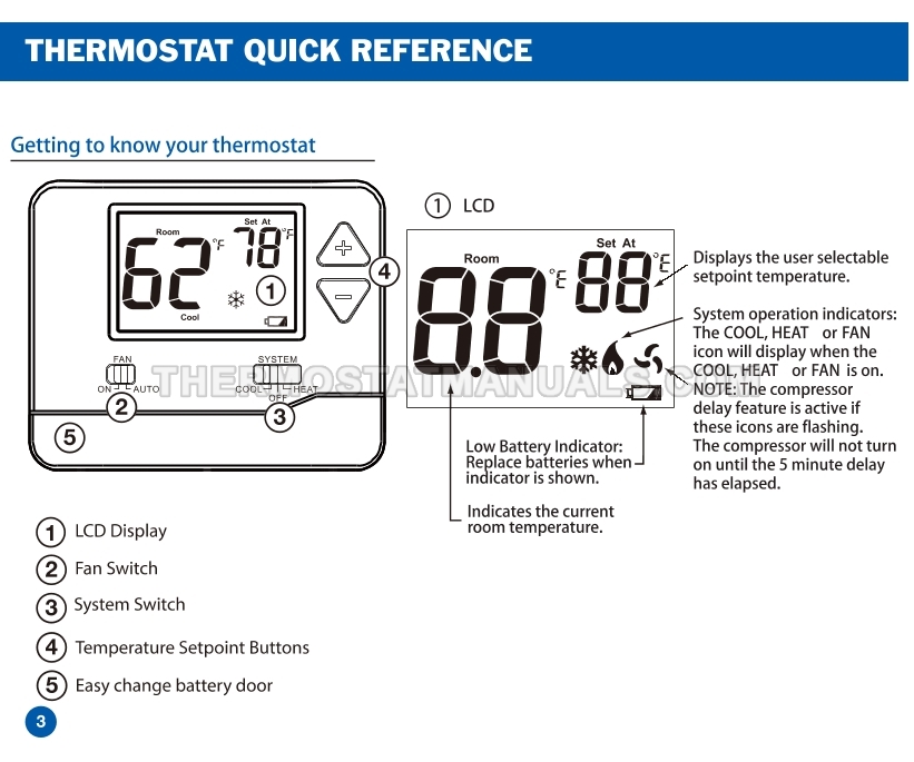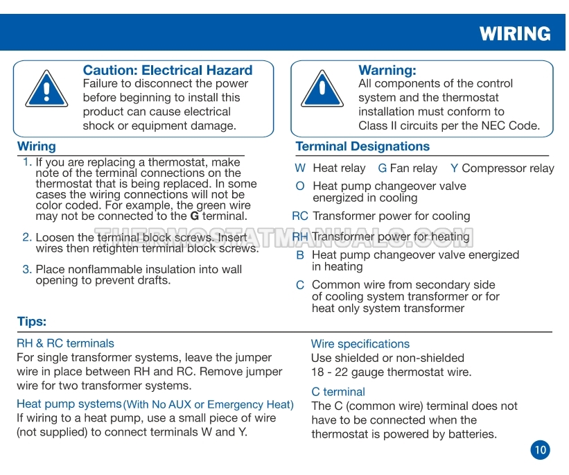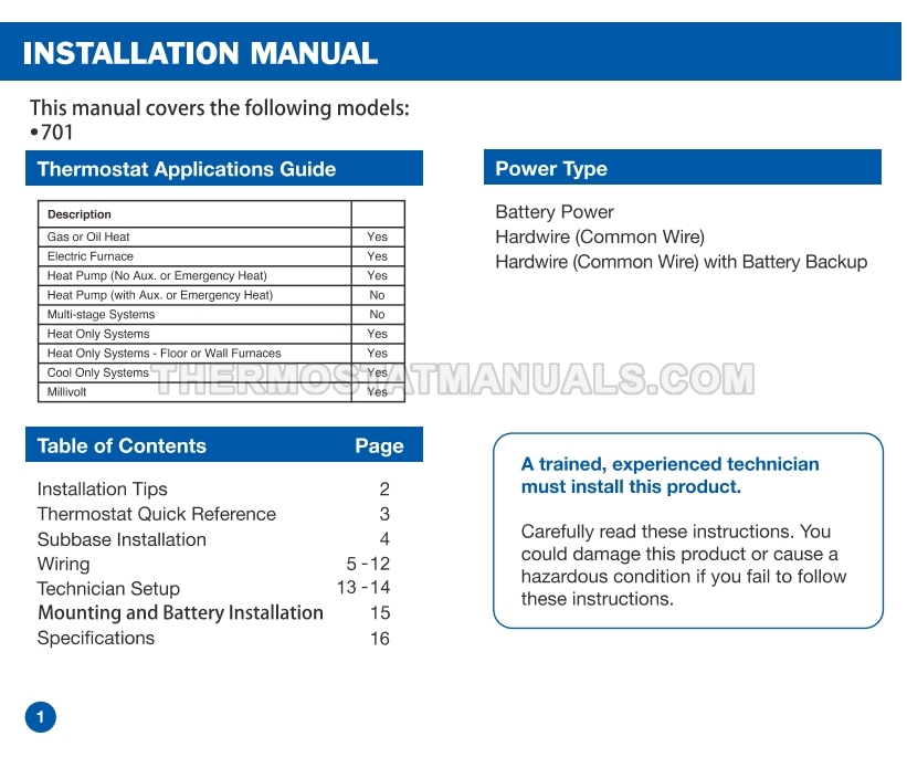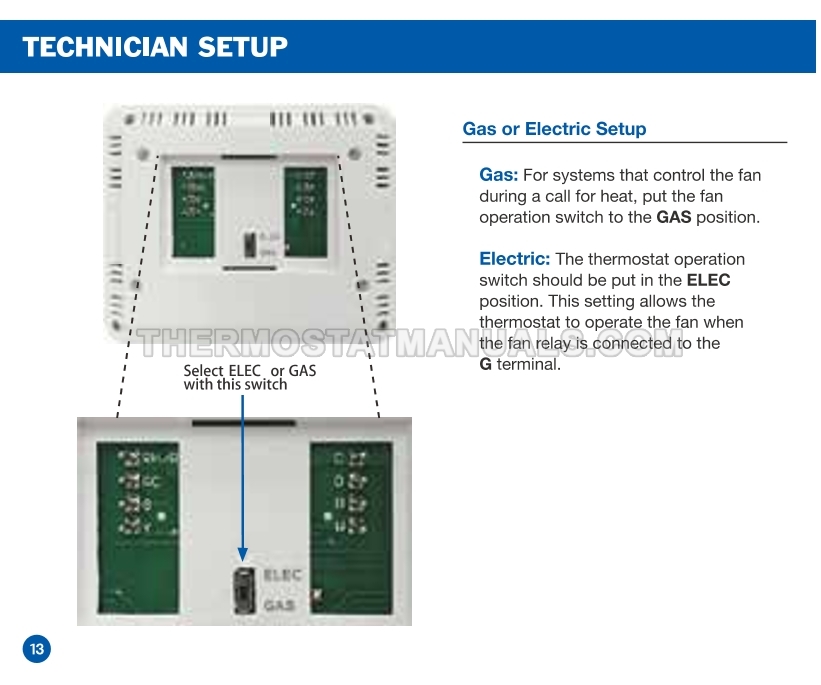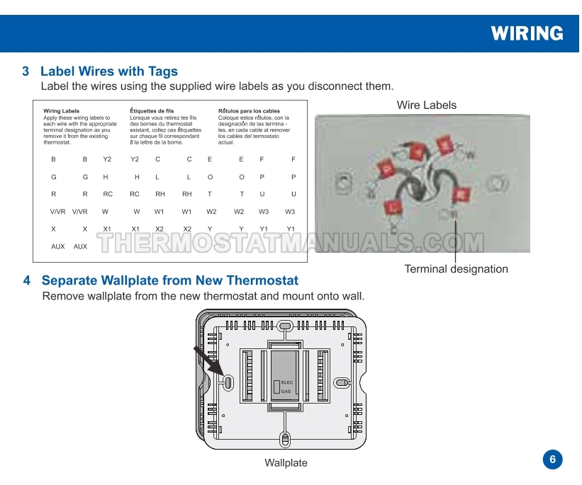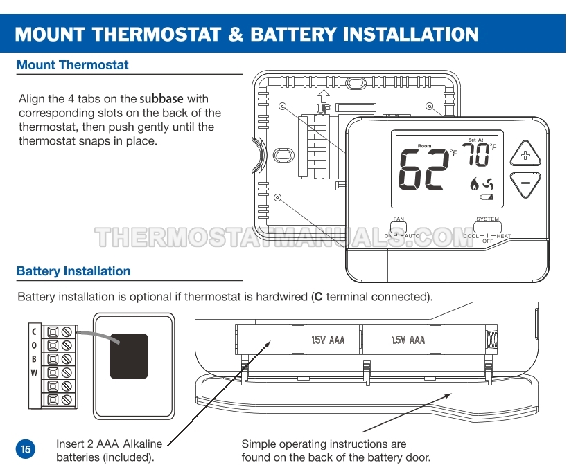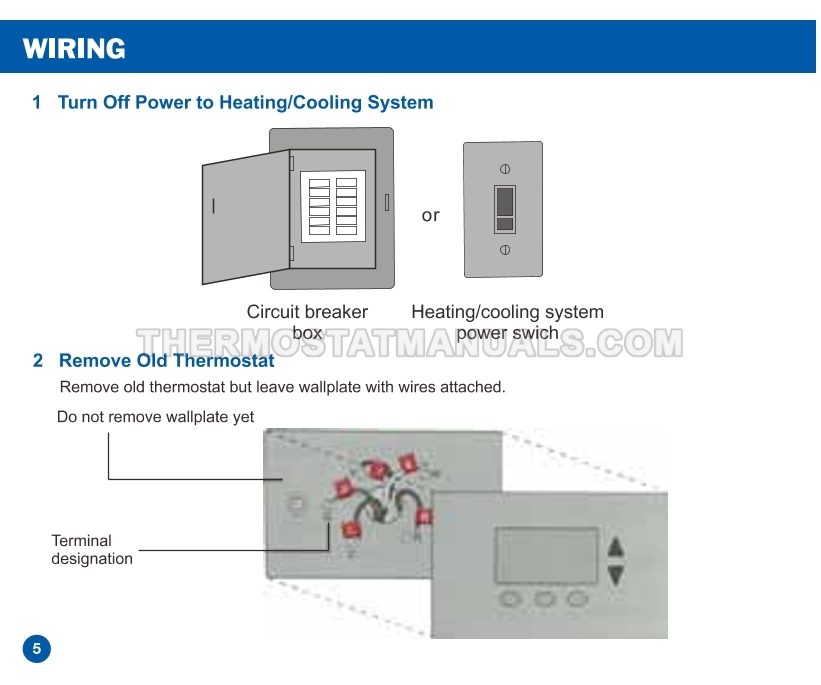 To replace the old thermostat and install the Electeck KRT1H1C 701, follow the steps described in the installation manual on the 18 pages. This will allow the simple non-programmable thermostat compatible with single stage heating, cooling and heat pump systems to be installed correctly and proceed to device configuration.
