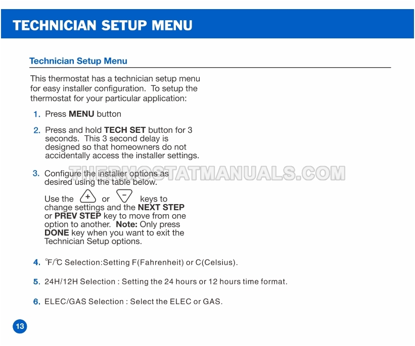 Please read this installation manual for 5-1-1 day programmable digital thermostat with large LCD display for single stage heating and cooling systems carefully. Failure to follow these steps could result in damage of the Electeck KRT1H1CP 705 or a hazardous situation.