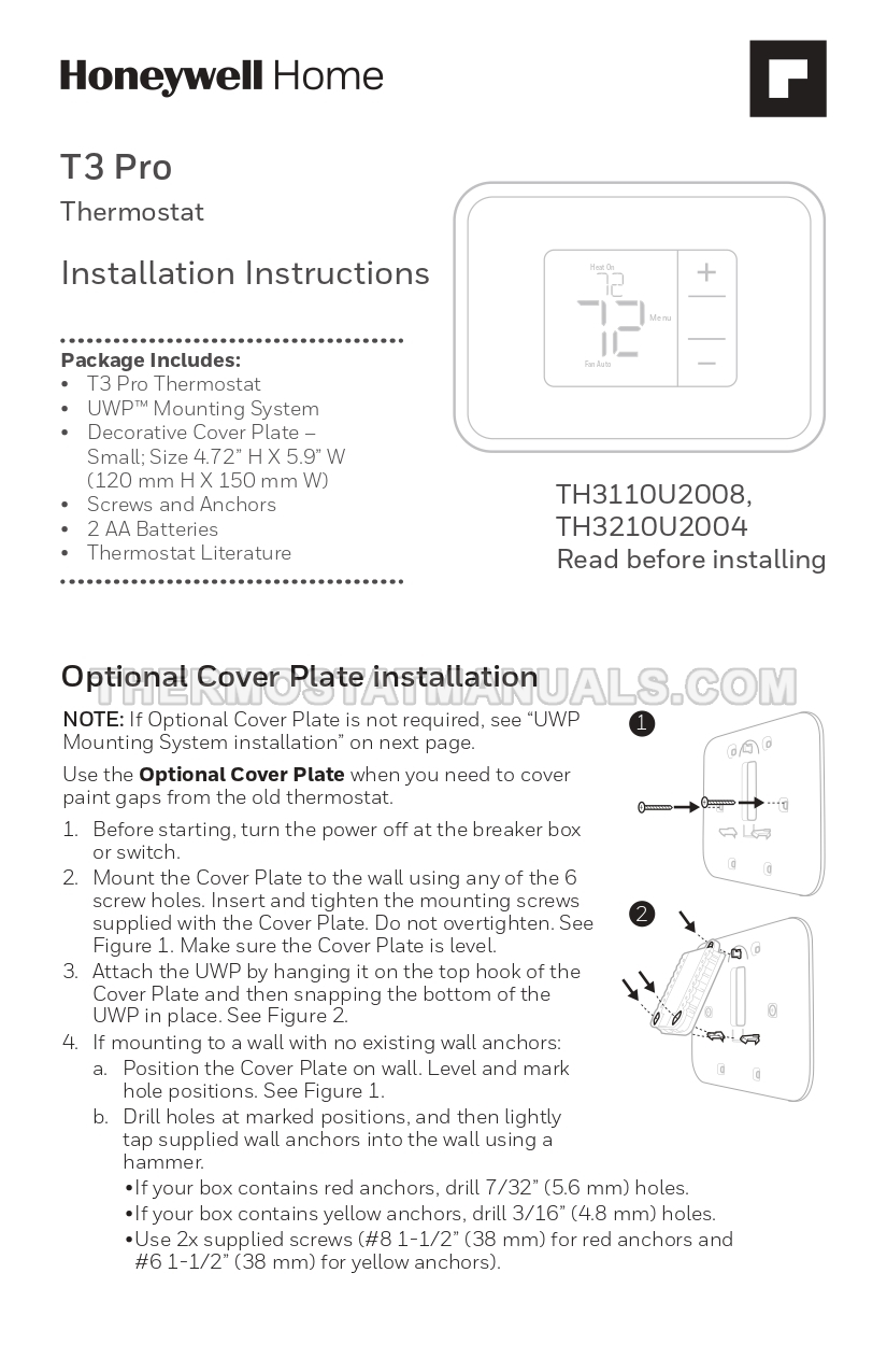 To replace the old thermostat and install the Honeywell TH3210U2004 T3 Pro, follow the steps described in the installation instructions on the 12 pages. This will allow the non-programmable thermostat powered by common wire or batteries (TH3210U) to be installed correctly and proceed to device configuration.