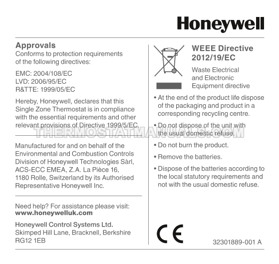 Please read this installation guide for single zone thermostat carefully. Failure to follow these steps could result in damage of the Honeywell Y87RF or a hazardous situation.
