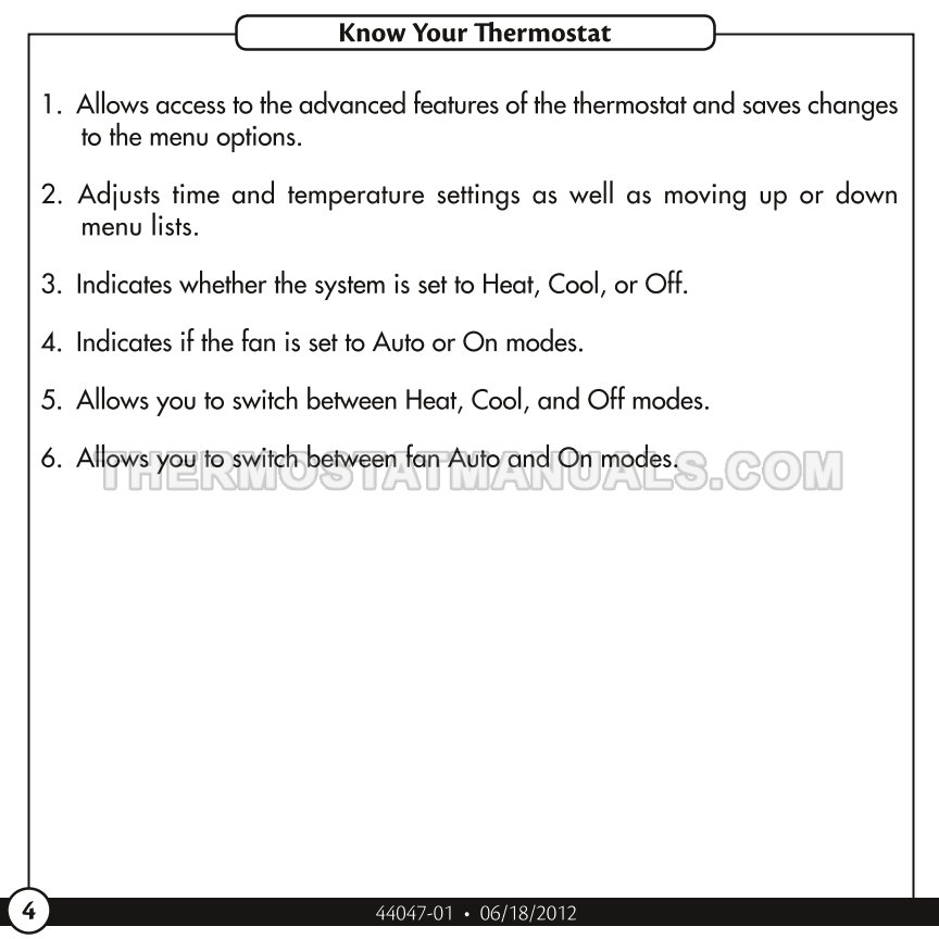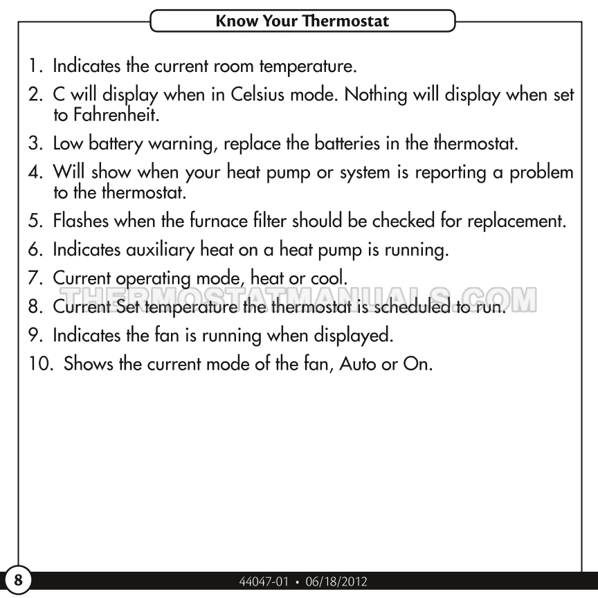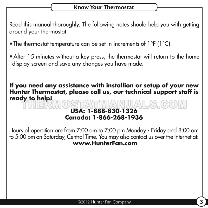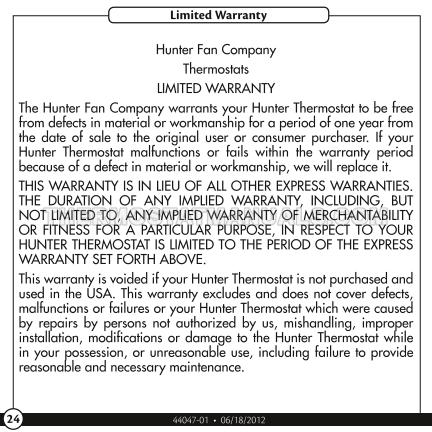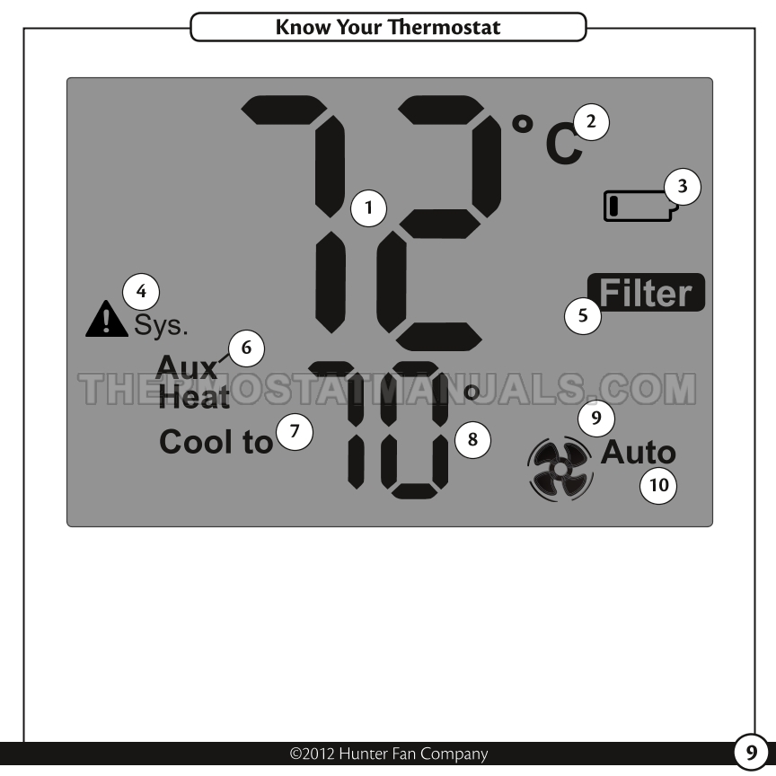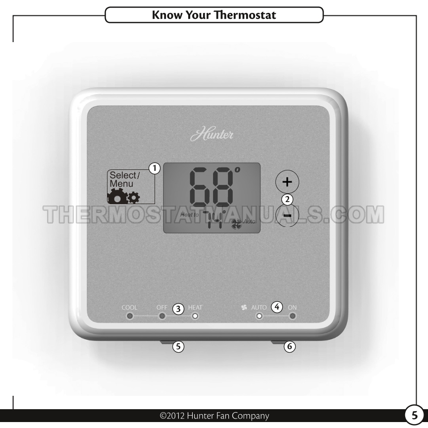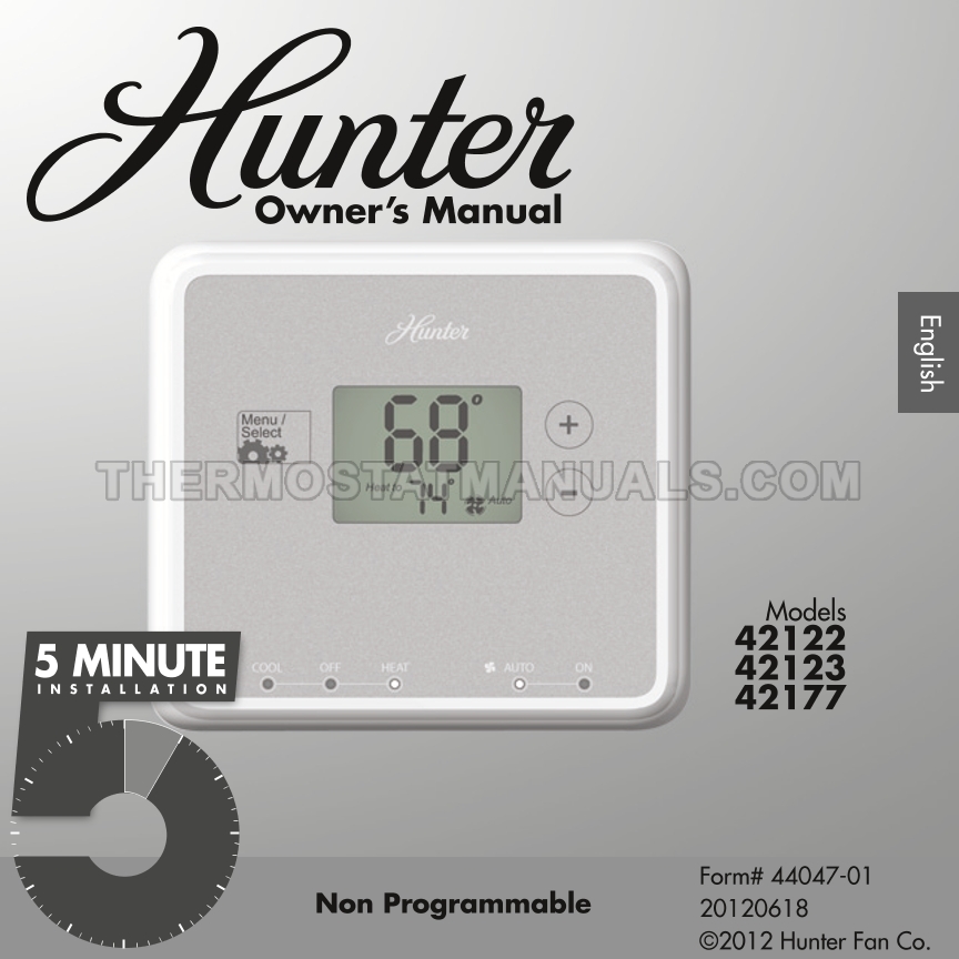 The use of Hunter 42177 thermostats is one of the necessary measures to maintain a comfortable microclimate and ensure energy efficiency of heating and air conditioning in residential buildings, offices, hotels, etc. Thanks to owner's manual, you can learn about the main differences of the device and adjust the operation of the HVAC system non-programmable thermostat.