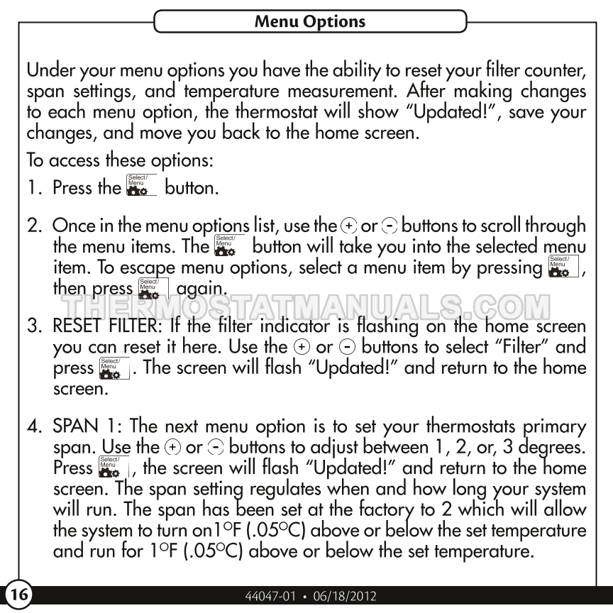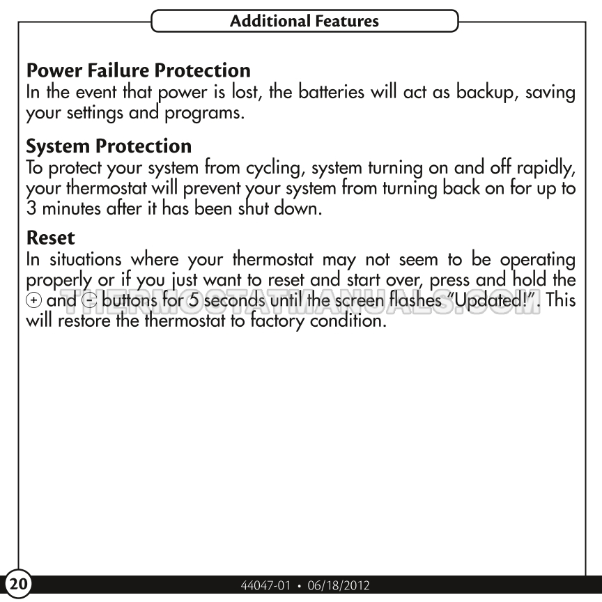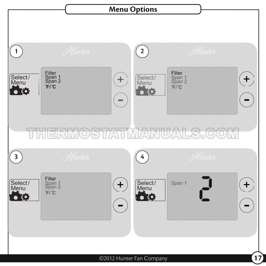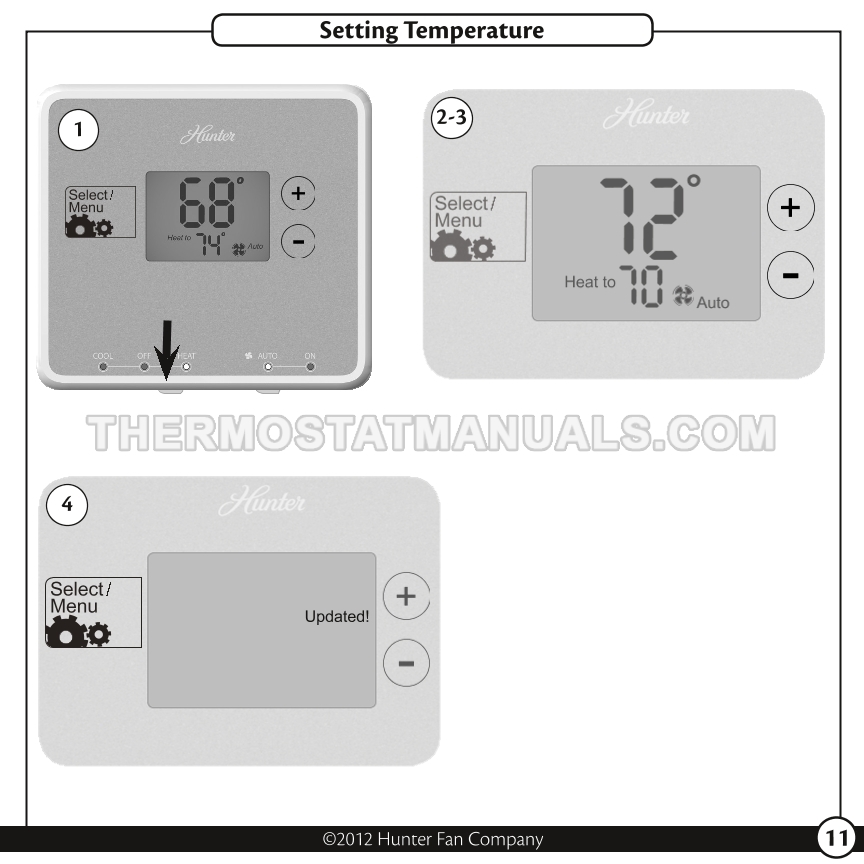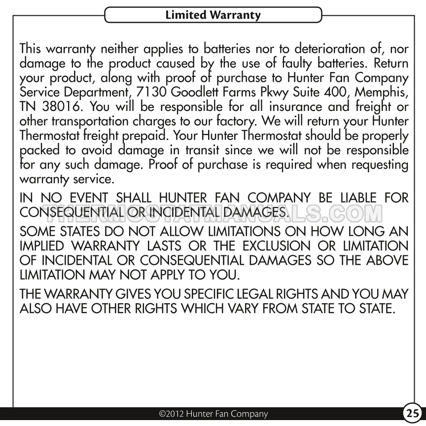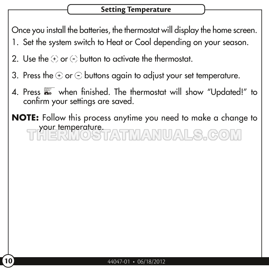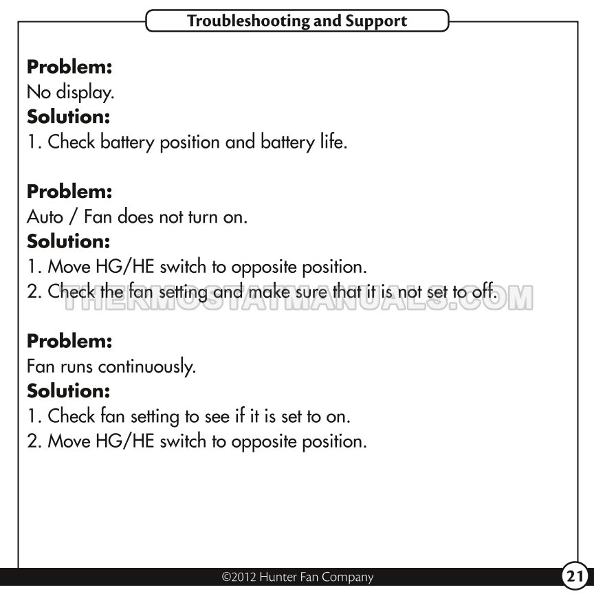 The use of Hunter 42177 thermostats is one of the necessary measures to maintain a comfortable microclimate and ensure energy efficiency of heating and air conditioning in residential buildings, offices, hotels, etc. Thanks to owner's manual, you can learn about the main differences of the device and adjust the operation of the HVAC system non-programmable thermostat.