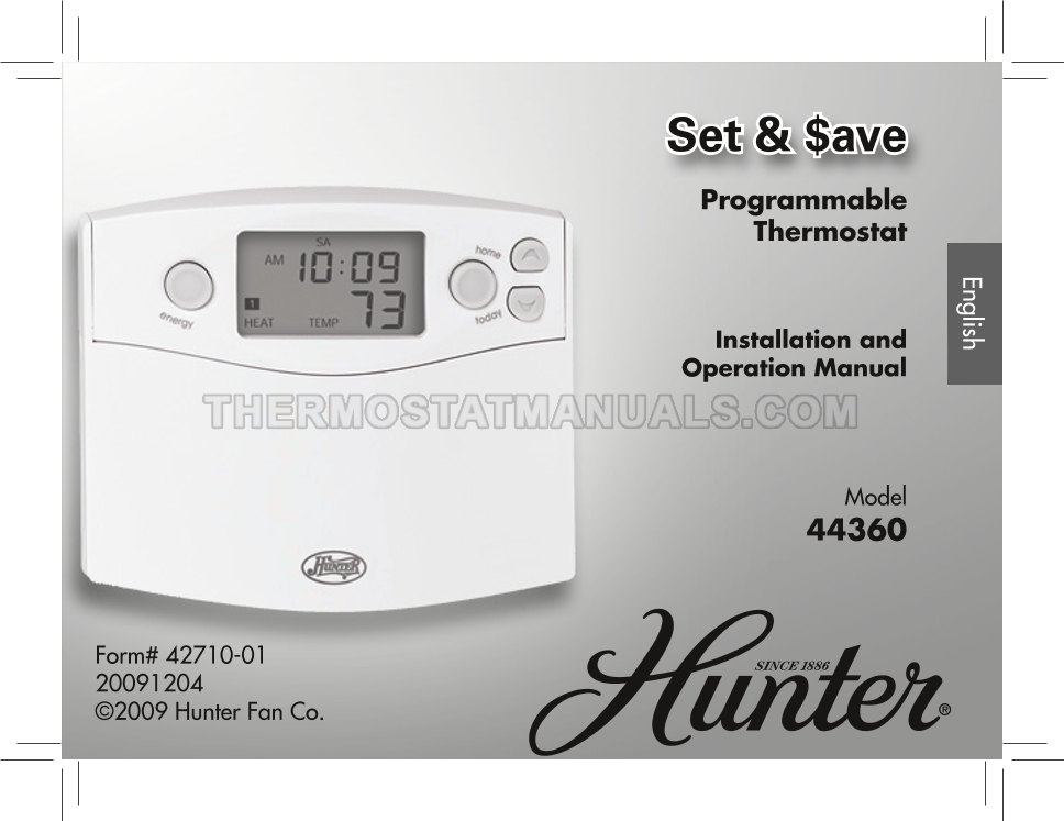 Learn how to install a Hunter 44360 thermostat to control your energy bills. This installation and operation manual describes in details the sequence of steps required to connect the programmable thermostat.