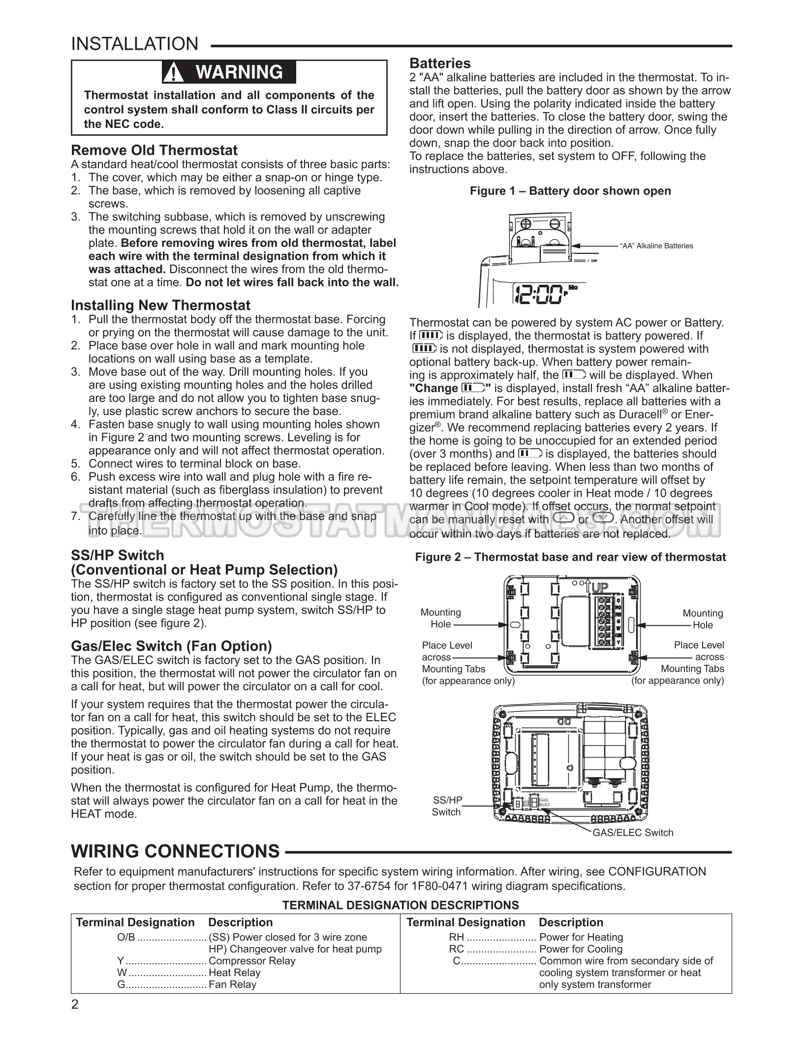 White Rodgers 1F86-0471 Installation and Operating Manual